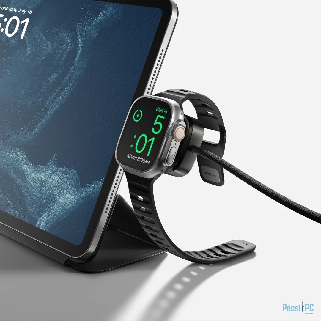 A beépített Apple Watch töltőkorong támogatja a gyorstöltést, így rekordidő alatt feltöltheted az órádat, és hosszú várakozás nélkül folytathatod a napodat. Az USB-C kompatibilitásnak köszönhetően ez a sokoldalú kábel biztosítja azt is, hogy az AirPods, az iPhone (USB-C adapterrel), az iPad és más USB-C eszközök töltésére is alkalmas legyen, így nélkülözhetetlen társad lehet akár útközben, akár az íróasztalodnál.