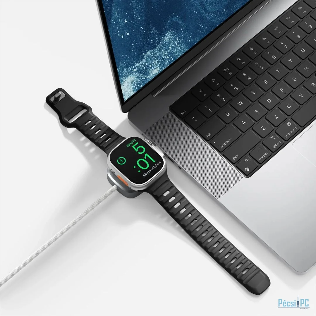 A beépített Apple Watch töltőkorong támogatja a gyorstöltést, így rekordidő alatt feltöltheted az órádat, és hosszú várakozás nélkül folytathatod a napodat. Az USB-C kompatibilitásnak köszönhetően ez a sokoldalú kábel biztosítja azt is, hogy az AirPods, az iPhone (USB-C adapterrel), az iPad és más USB-C eszközök töltésére is alkalmas legyen, így nélkülözhetetlen társad lehet akár útközben, akár az íróasztalodnál.