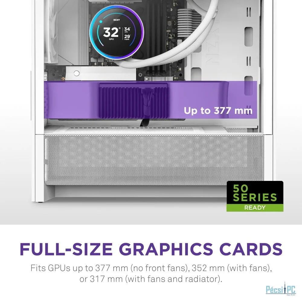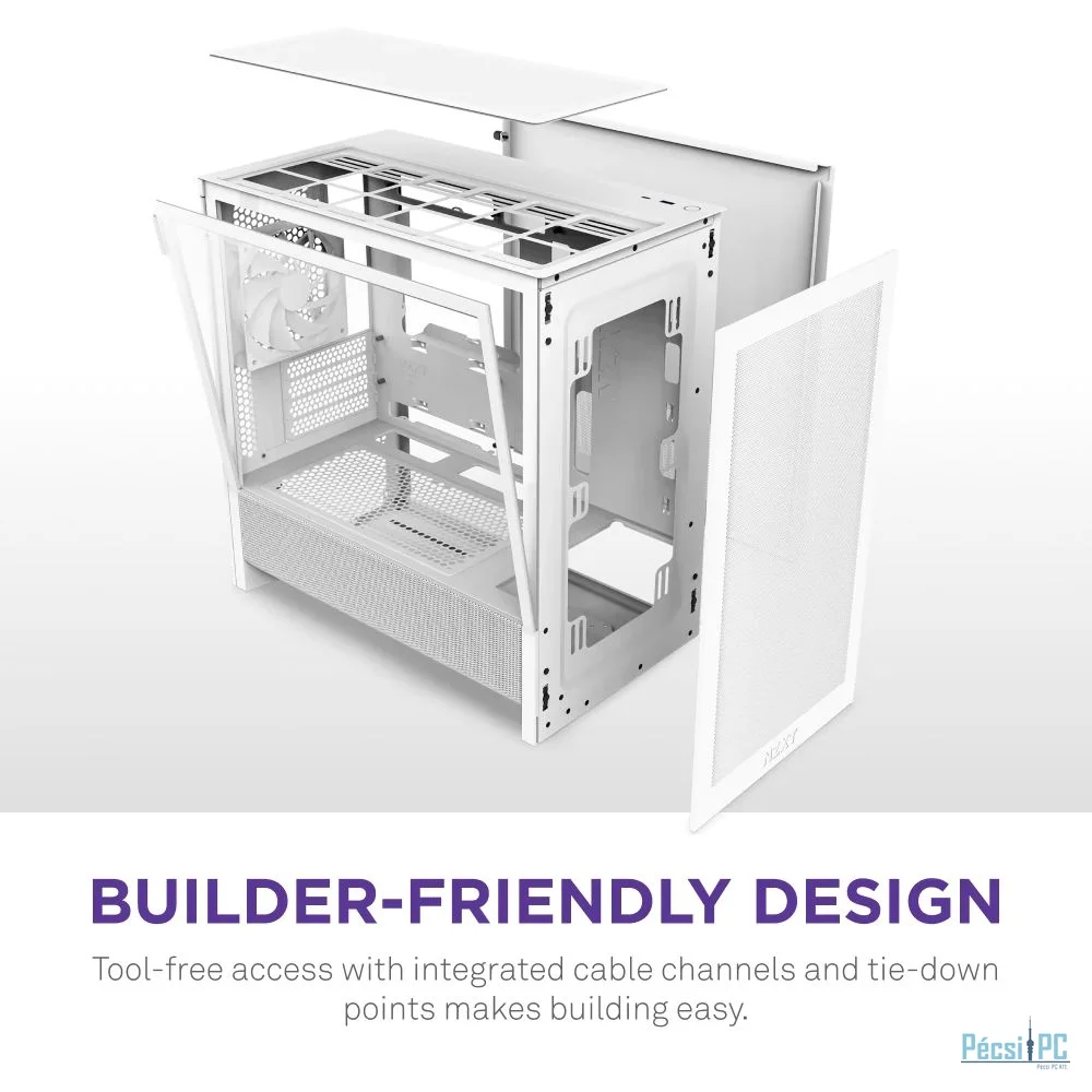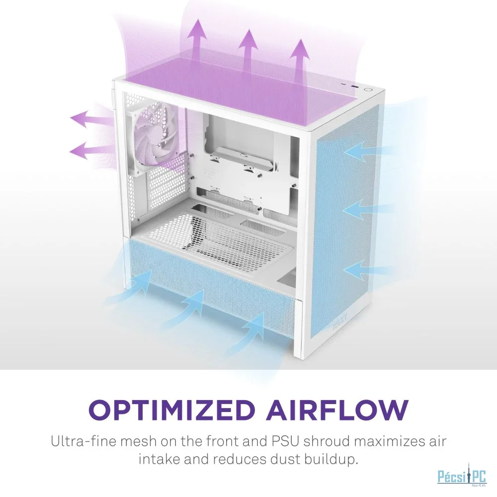 microATX, White, 1x3,5", 2x2,5", 1xUSB3.2, 1xUSB Type-C, Audio, Táp nélkül, 400x389x225mm, Ventilátor:12cm, Tempered glass window, Gamer