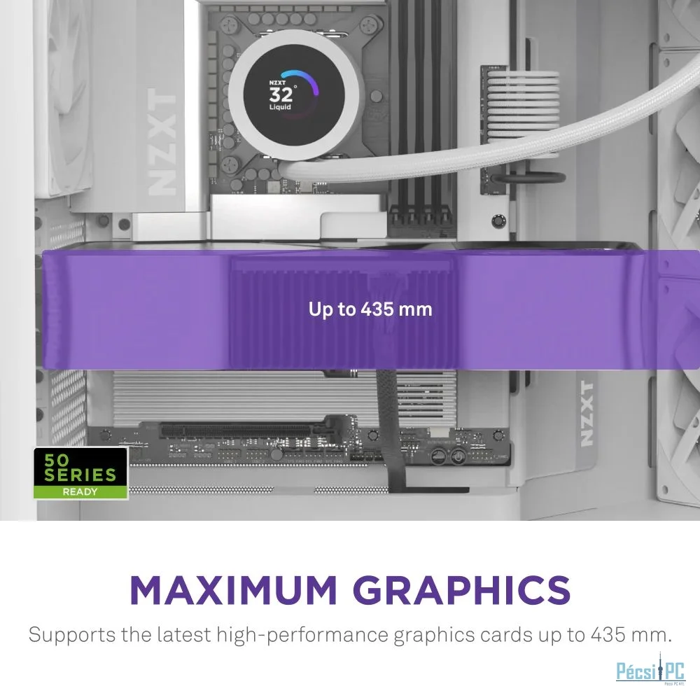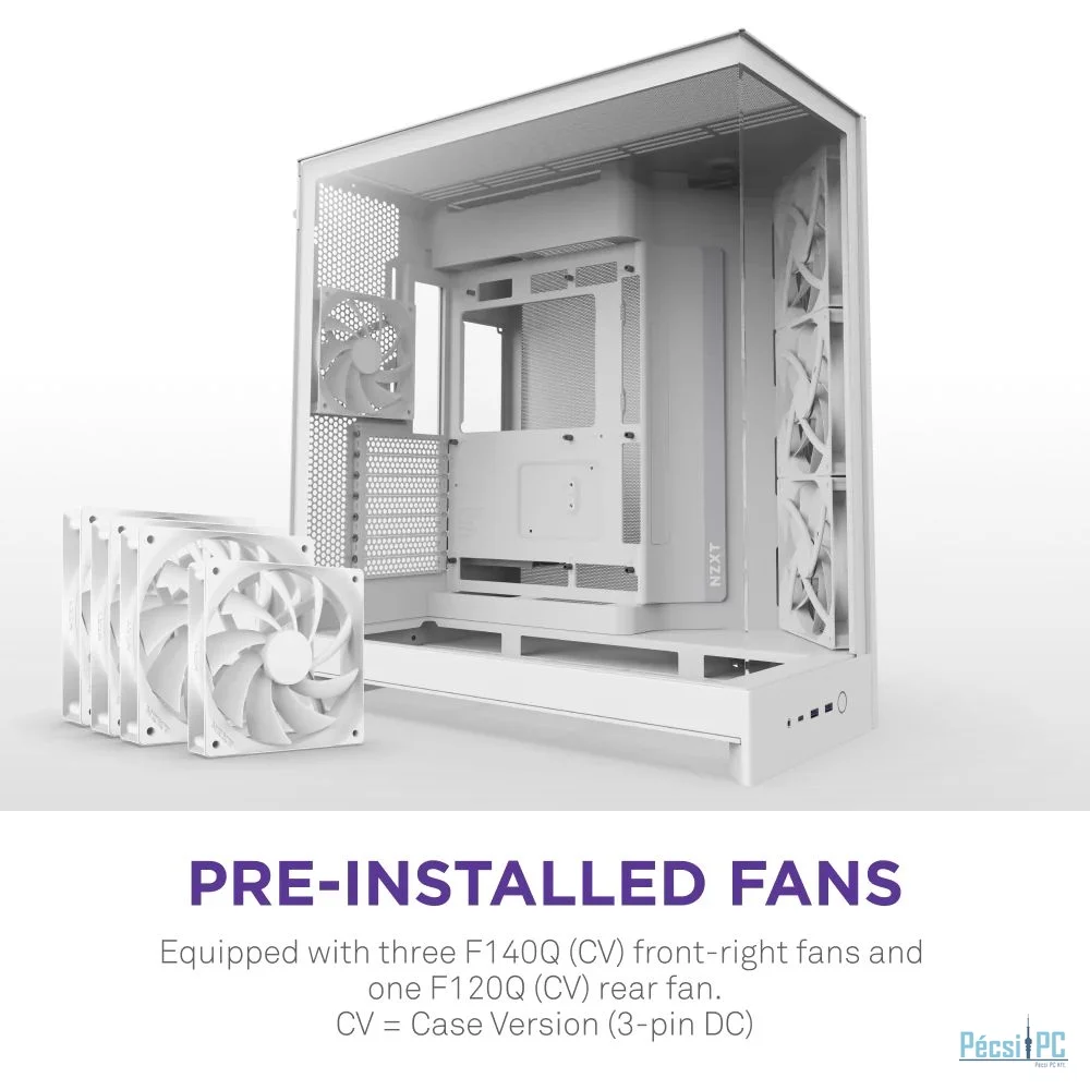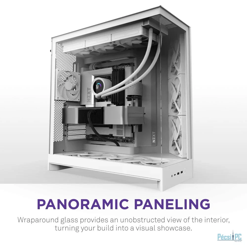 E-ATX, White, 2x3,5", 6x2,5", 2xUSB3.2, 1xUSB Type-C, Audio, Táp nélkül, 506x315x481mm, Ventilátor:3x14cm, 1x12cm, Tempered glass window