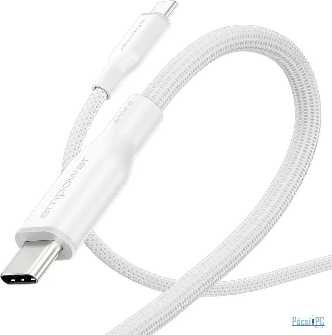 USB kábel, USB-C, USB-C, USB2.0, Male/Male, 2m, White, Töltő és adatkábel, Szövetborítás