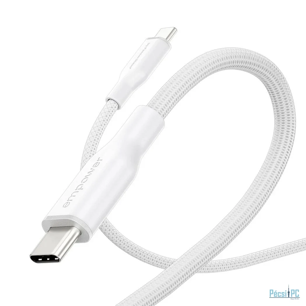 USB kábel, USB-C, USB-C, USB2.0, Male/Male, 1,2m, White, Töltő és adatkábel, Szövetborítás