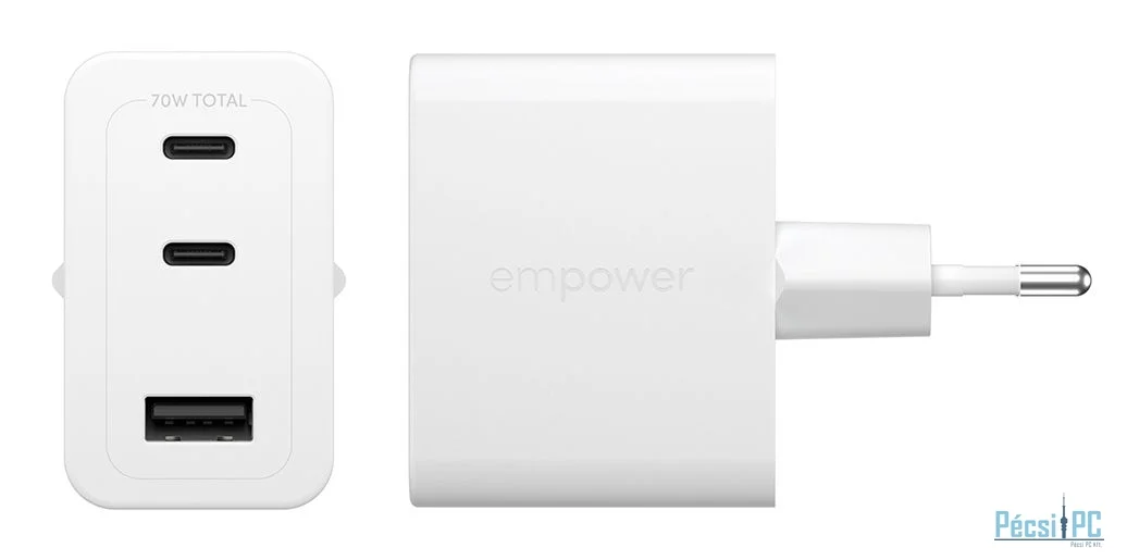 Adapter, 1xUSB-A, 2xUSB-C, 5V, 3A, 70W, PD, White