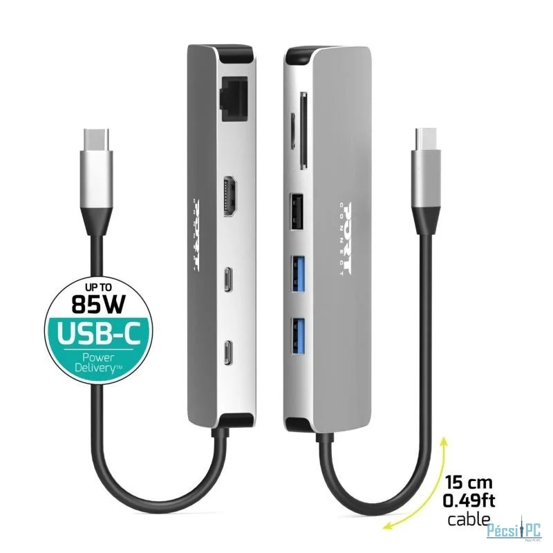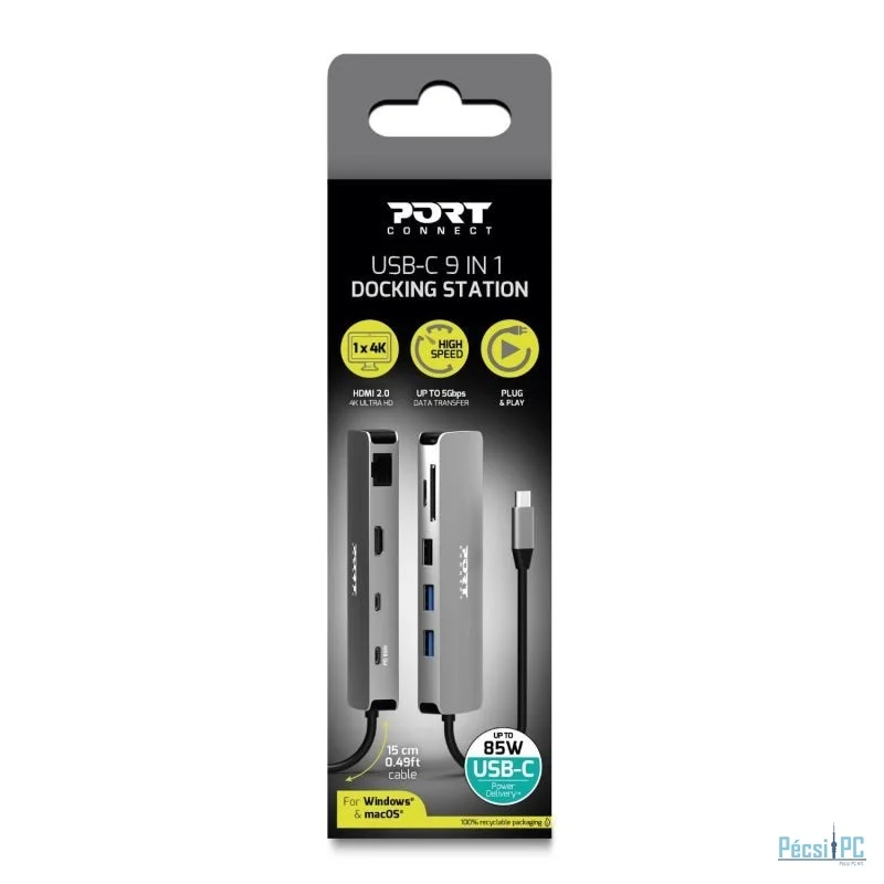 PORT CONNECT USB-C 9in1 dokkolóállomás - Bővítse laptopja csatlakoztathatóságát, és akár kilenc eszközt, köztük 4K-s monitort, hálózatot és kártyákat csatlakoztathat akár 85 W-os teljesítmény mellett.