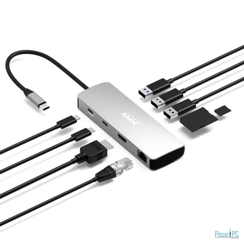 Az állomás a laptop egyetlen USB-C portját akár kilenc különböző interfészre bővíti, beleértve az USB-A, USB-C, HDMI, Ethernet és kártyaolvasókat.