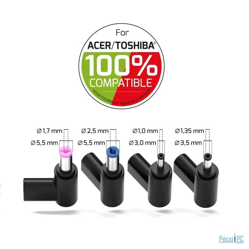 Ezt a tápegységet úgy tervezték, hogy megfeleljen a saját fejlesztésű csatlakozóval rendelkező laptopok követelményeinek. Cserélhető, speciális csatlakozófejeinek köszönhetően széles körű kompatibilitást biztosít a különböző generációs laptopokkal, miközben stabil és megbízható csatlakozást garantál. Ideális megoldás az eredeti töltő cseréjére vagy kiegészítésére, a biztonság és a teljesítmény romlása nélkül.