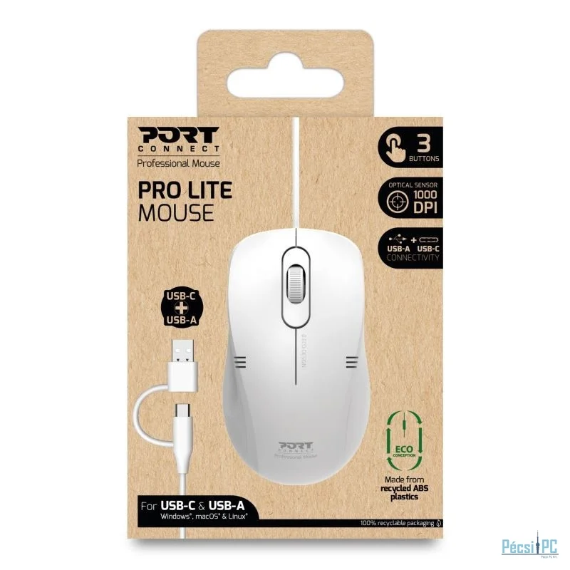 Vezetékes, USB, USB-C, Optikai, 1000DPI, White