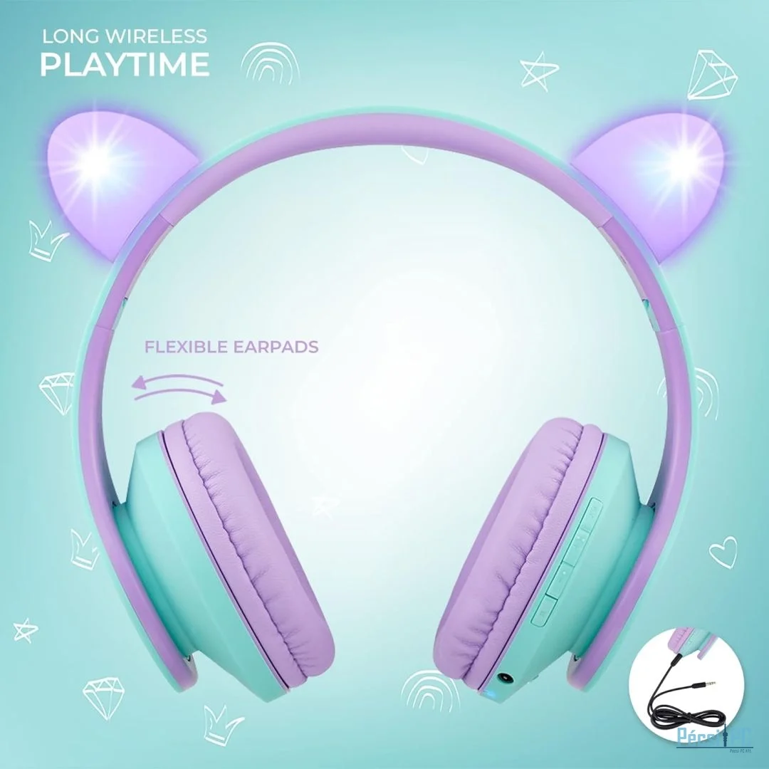 PowerLocus P2Kids Bluetooth Headset Teal/Purple Ears