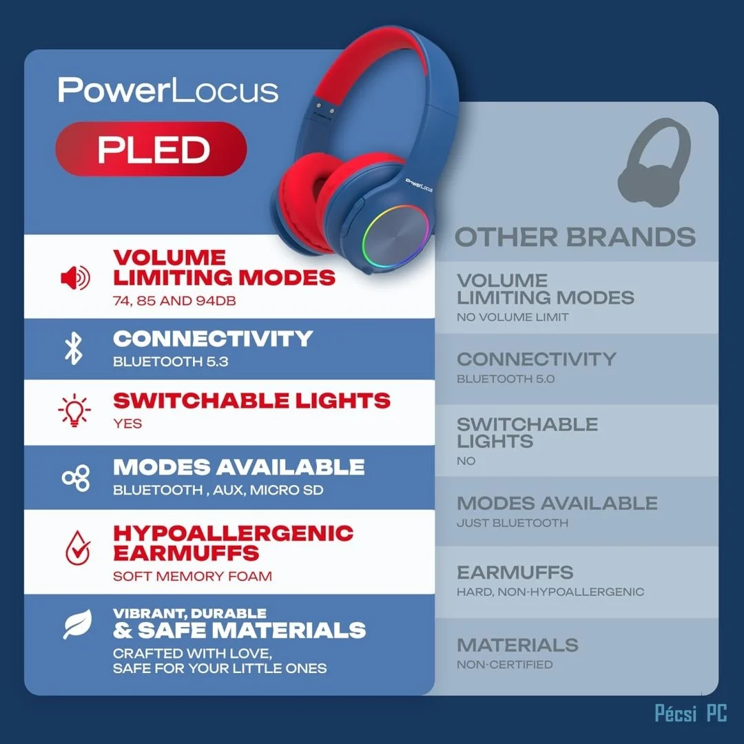 PowerLocus PLED Kids Bluetooth Headset Blue/Red