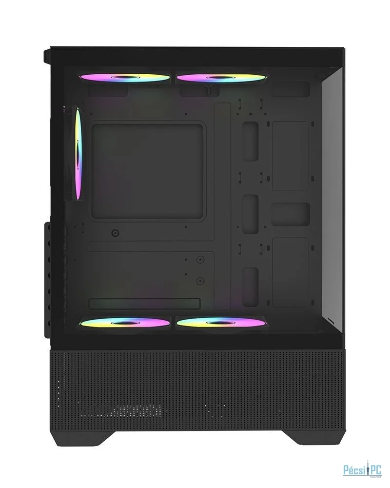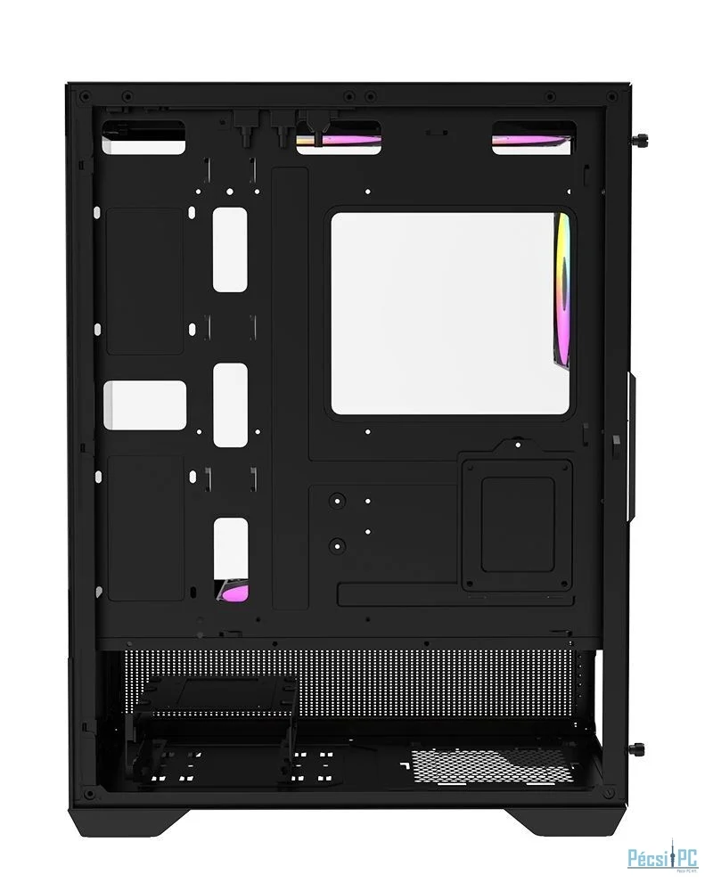ATX, Black, 2x3,5", 3x2,5", 2xUSB2.0, 1xUSB3.0, Audio, Táp nélkül, 486x364x215mm, Ventilátor:5x12cm, Tempered glass window, RGB, Gamer