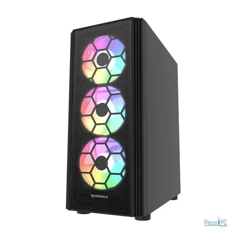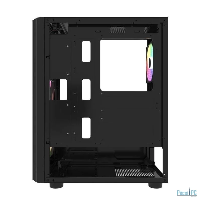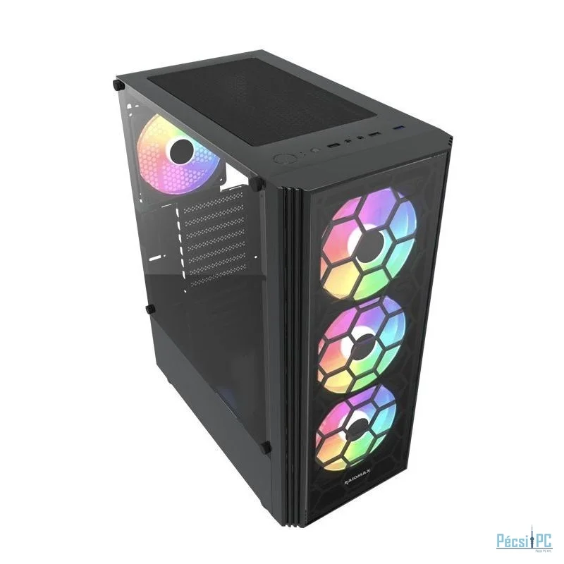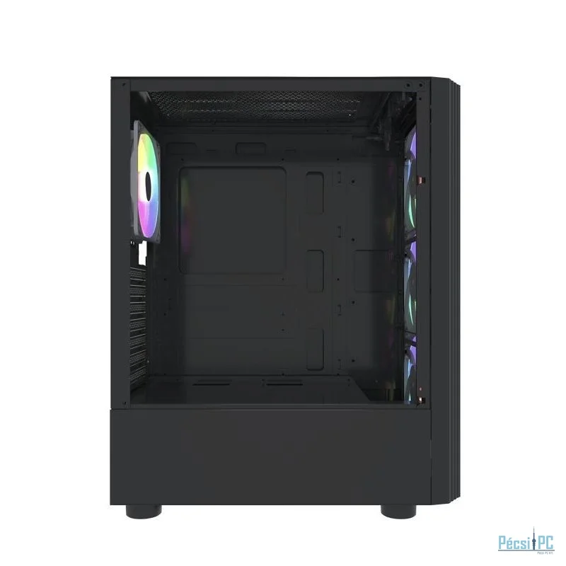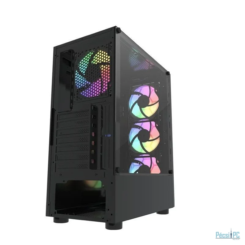ATX, Black, 2x3,5", 3x2,5", 2xUSB2.0, 1xUSB3.0, Audio, Táp nélkül, 455x365x200mm, Ventilátor:4x12cm, Tempered glass window
