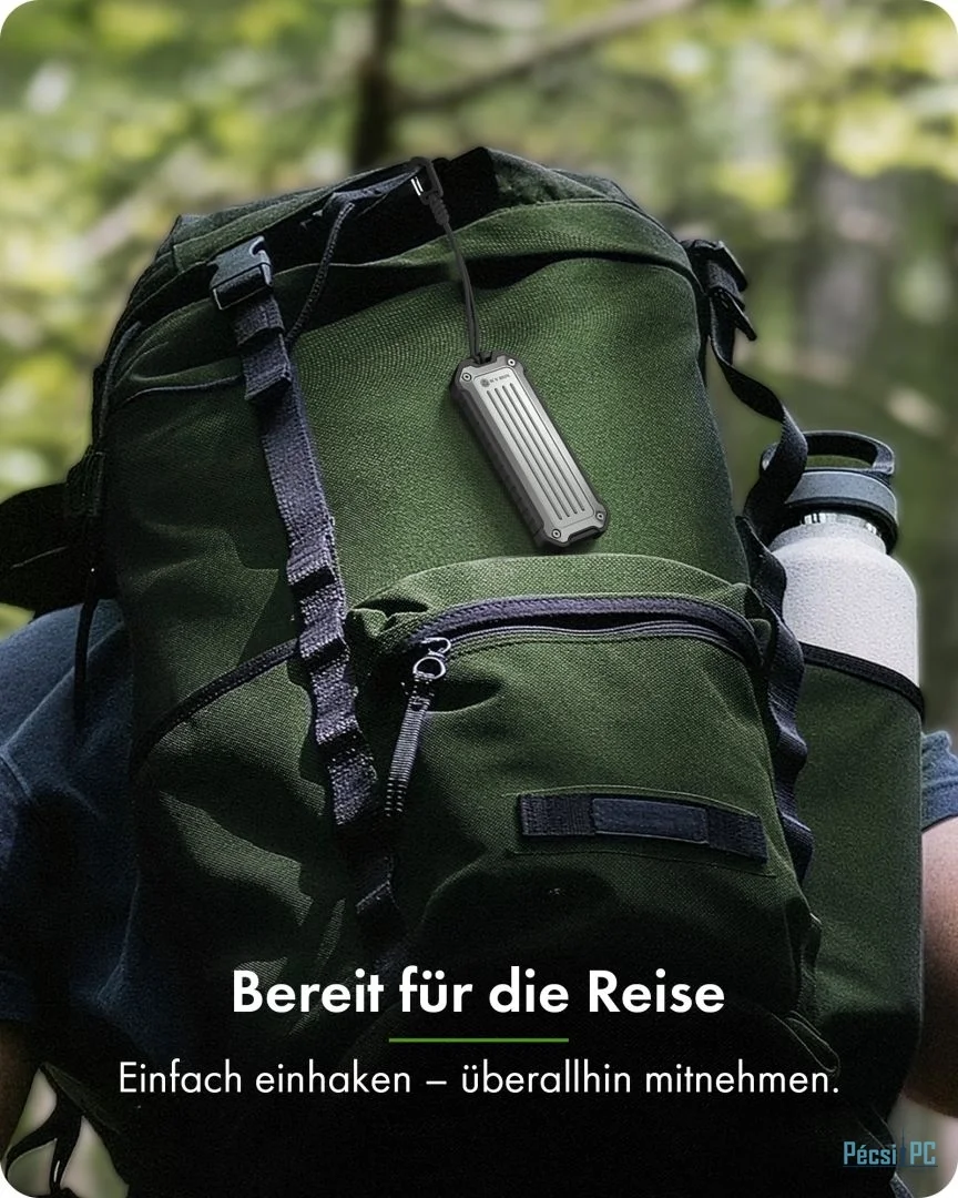 Hordozható, M.2, M.2, Type-C, USB3.1, NVMe, Fém, Passzív, Black