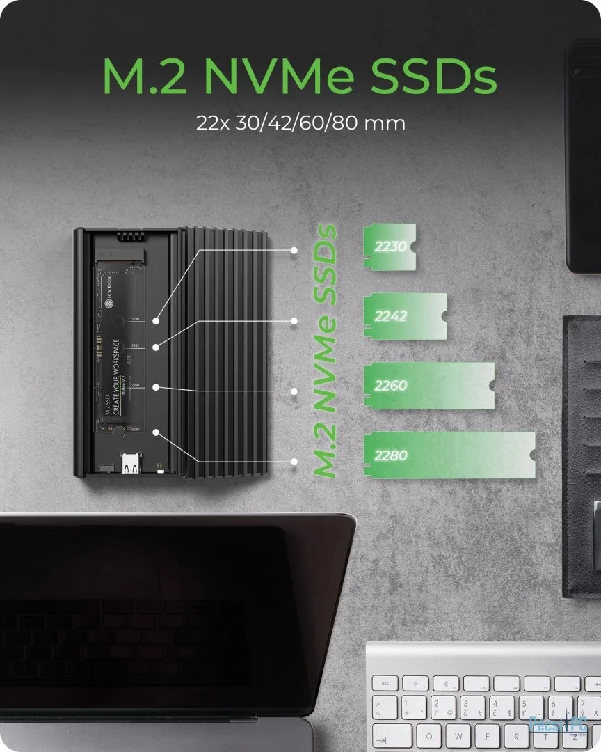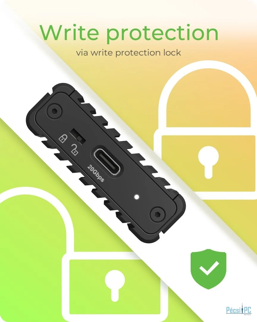 Hordozható, M.2, M.2, Type-C, USB3.2, NVMe, Fém, Passzív, Black