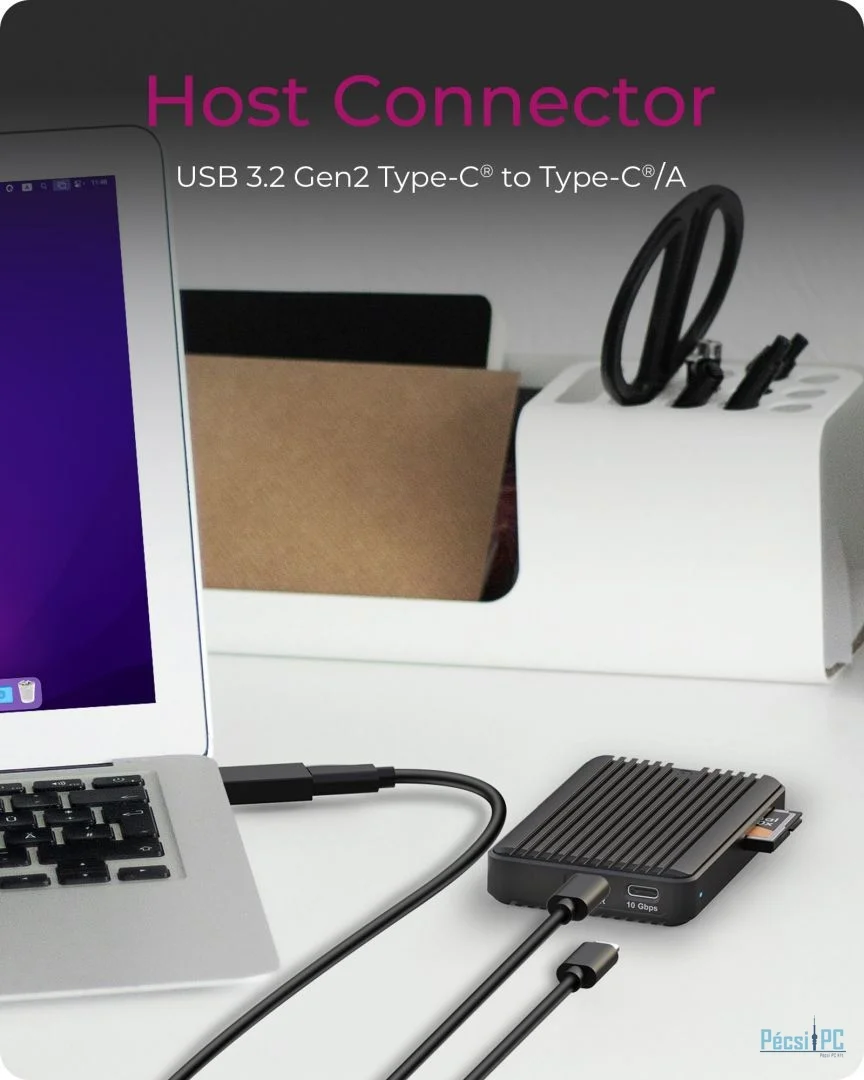 Hordozható, M.2, SATA/M.2, USB-A/Type-C, USB3.2, NVMe, Műanyag, Passzív, Black
