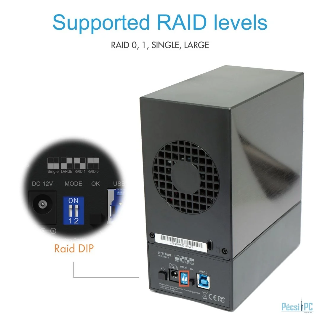Raidsonic IcyBox IB-RD3621-U3 RAID enclosure for 2x HDD with USB 3.0 Type-A interface and fan