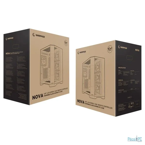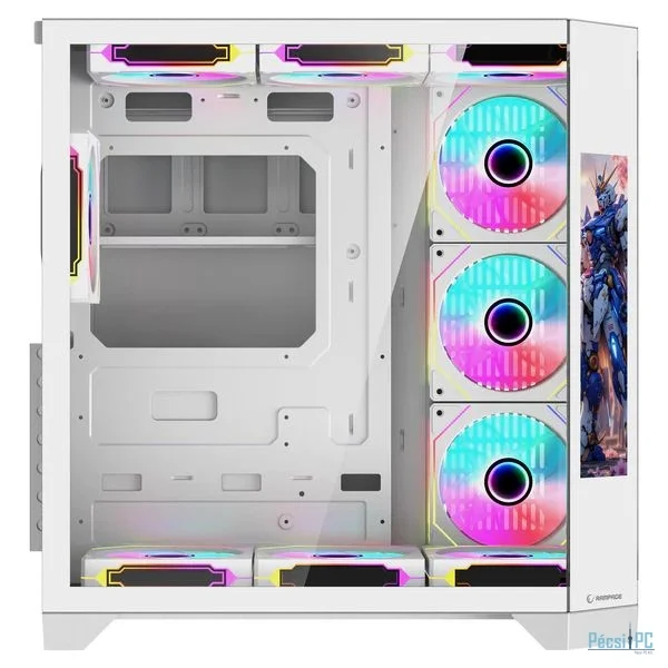 ATX, White, 2x3,5", 3x2,5", 1xUSB2.0, 1xUSB3.0, Audio, Táp nélkül, 435x418x280mm, Ventilátor:7x12cm, Tempered glass window, RGB, Gamer