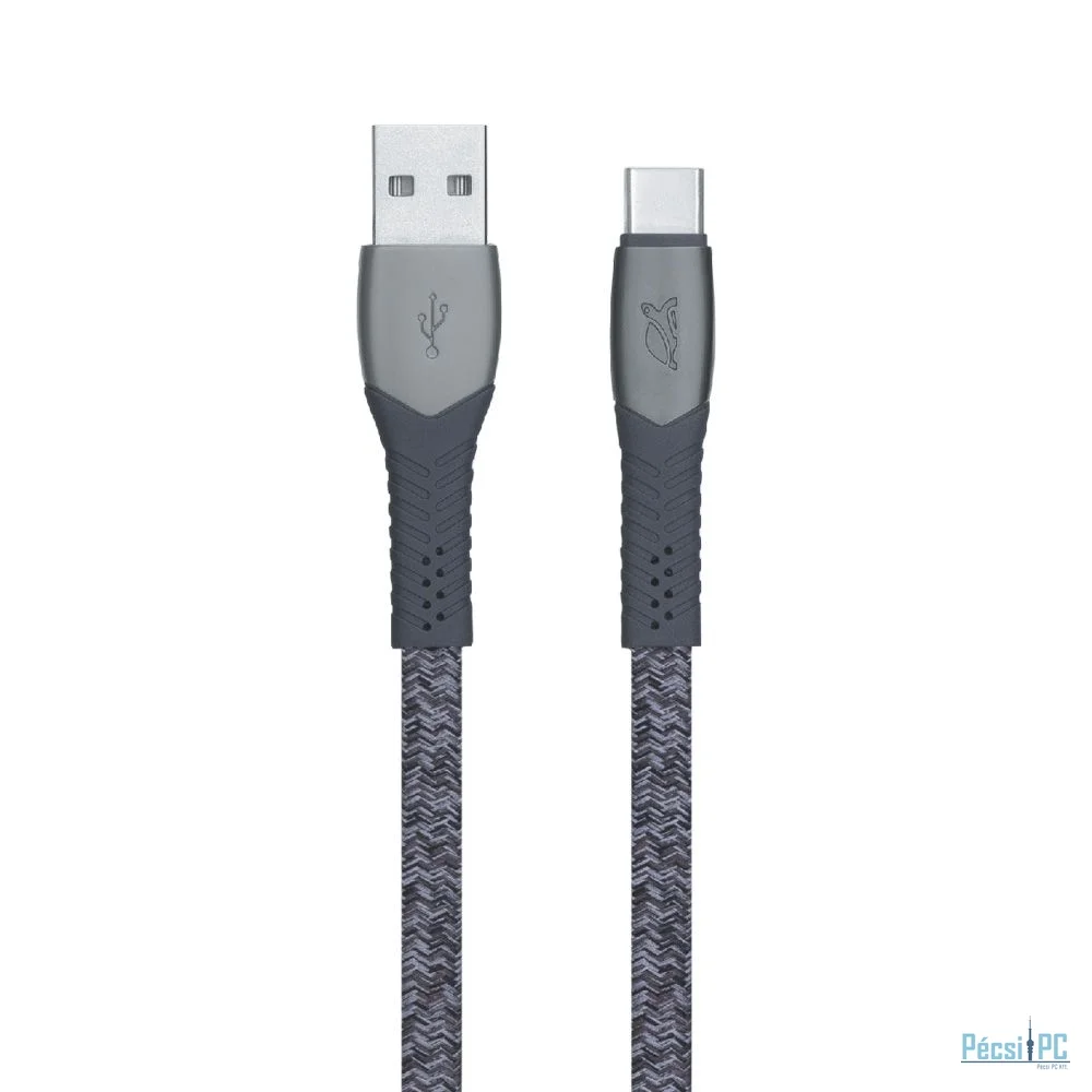 USB kábel, USB-A, USB-C, USB2.0, Male/Male, 1,2m, Grey, Töltő és adatkábel, Szövetborítás