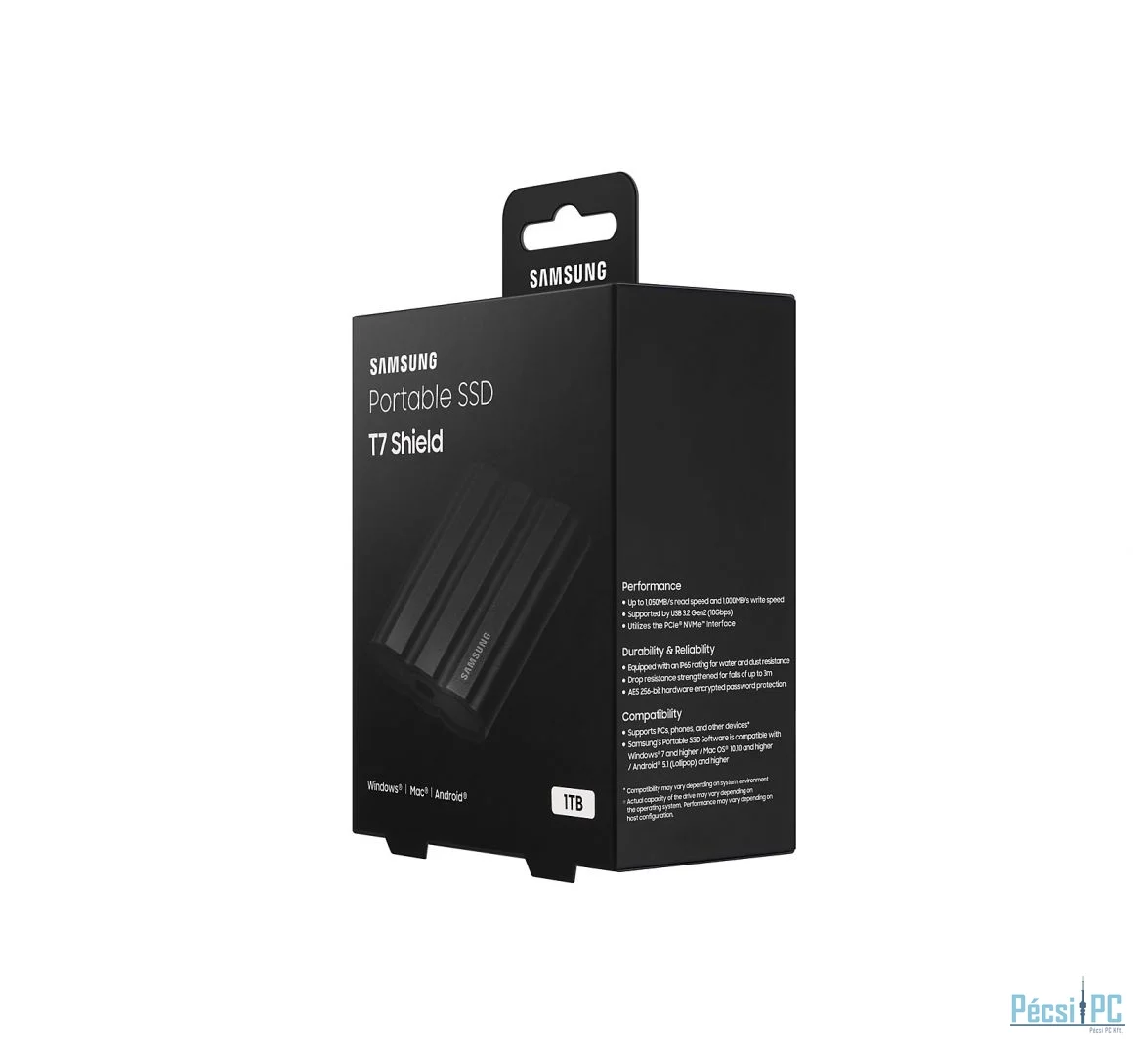 1TB, Write:1000MB/s, Read:1050MB/s, USB 3.2, USB-C, Vízálló, IP65, Black