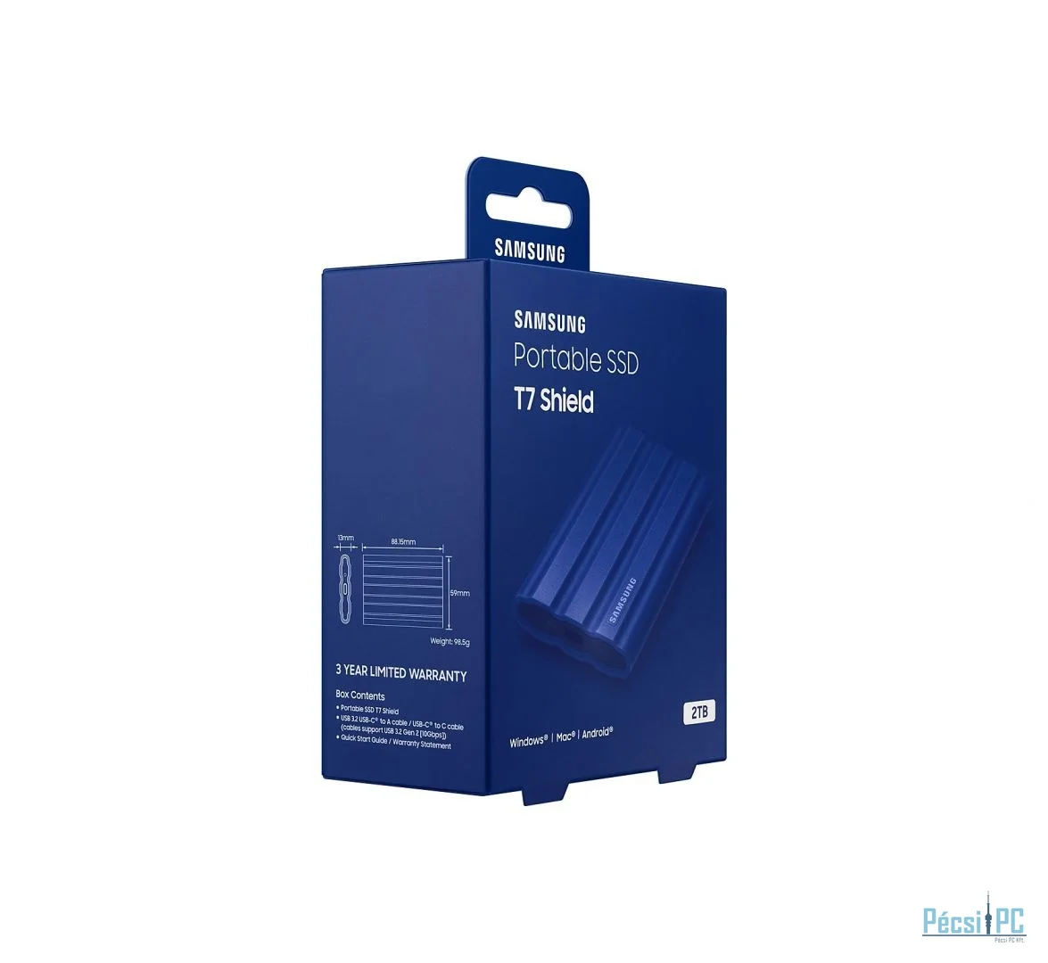 2TB, Write:1000MB/s, Read:1050MB/s, USB 3.2, USB-C, Vízálló, IP65, Blue
