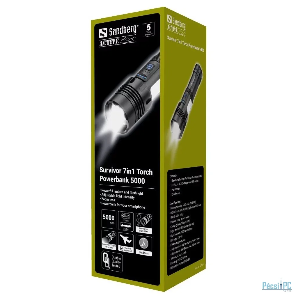 Sandberg Survivor 7in1 Torch 5000mAh PowerBank Black