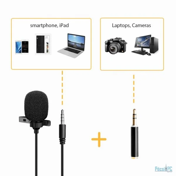 Mikrofon, 3.5mm, Kábel:2,5m, 1000Ohm, 50Hz-18kHz, Black
