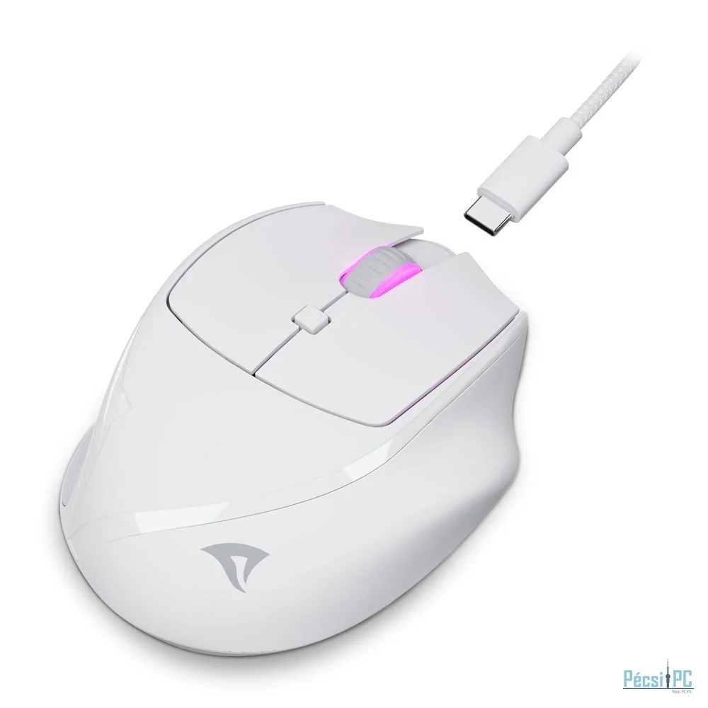 Vezeték nélküli, USB, USB-C, Wireless 2,4GHz, Optikai, 4000DPI, White, Újratölthető, RGB, Gamer