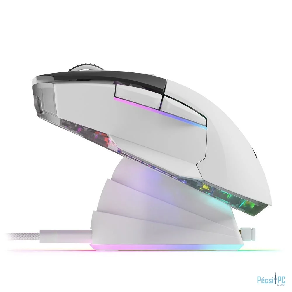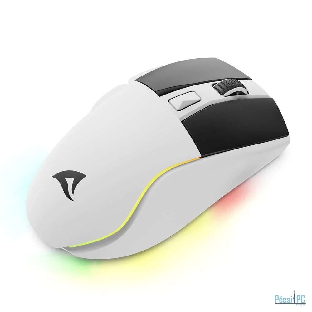 Vezeték nélküli, USB, Wireless 2,4GHz, Optikai, 6400DPI, White, Újratölthető, RGB, Gamer
