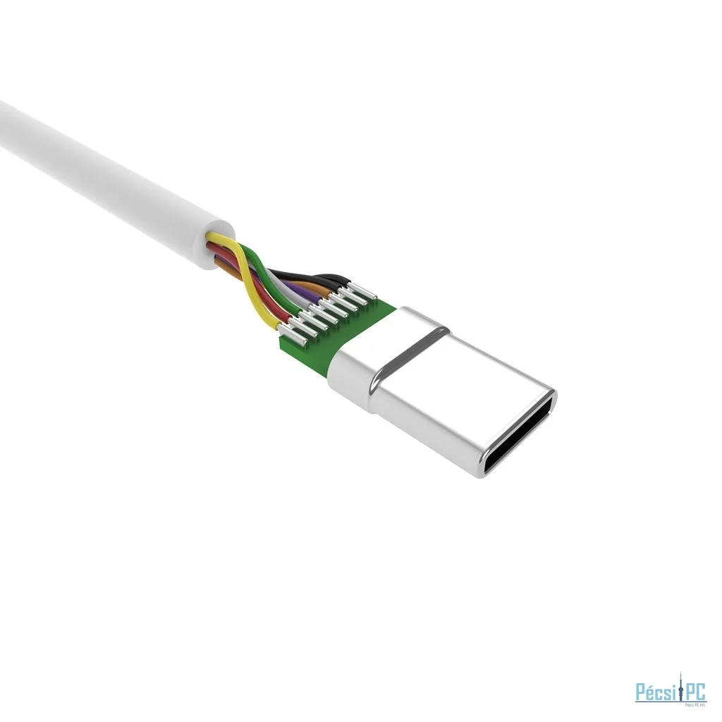 USB kábel, USB-A, USB-C, USB2.0, Male/Male, 1m, White, Töltő és adatkábel