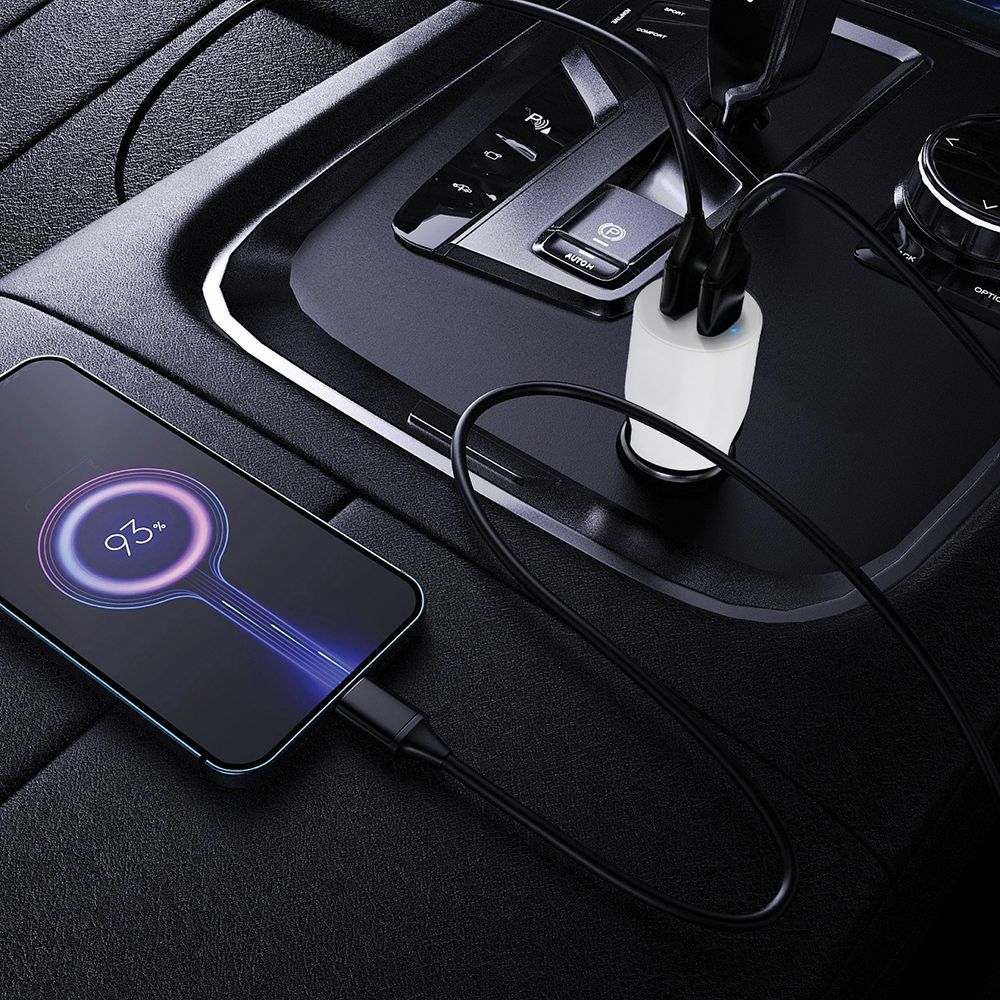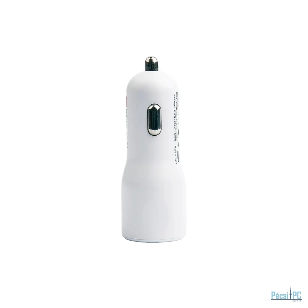 Autós töltő, 1xUSB-A, 1xUSB-C, 5V/9V/12V, 3A, 20W, PD, White