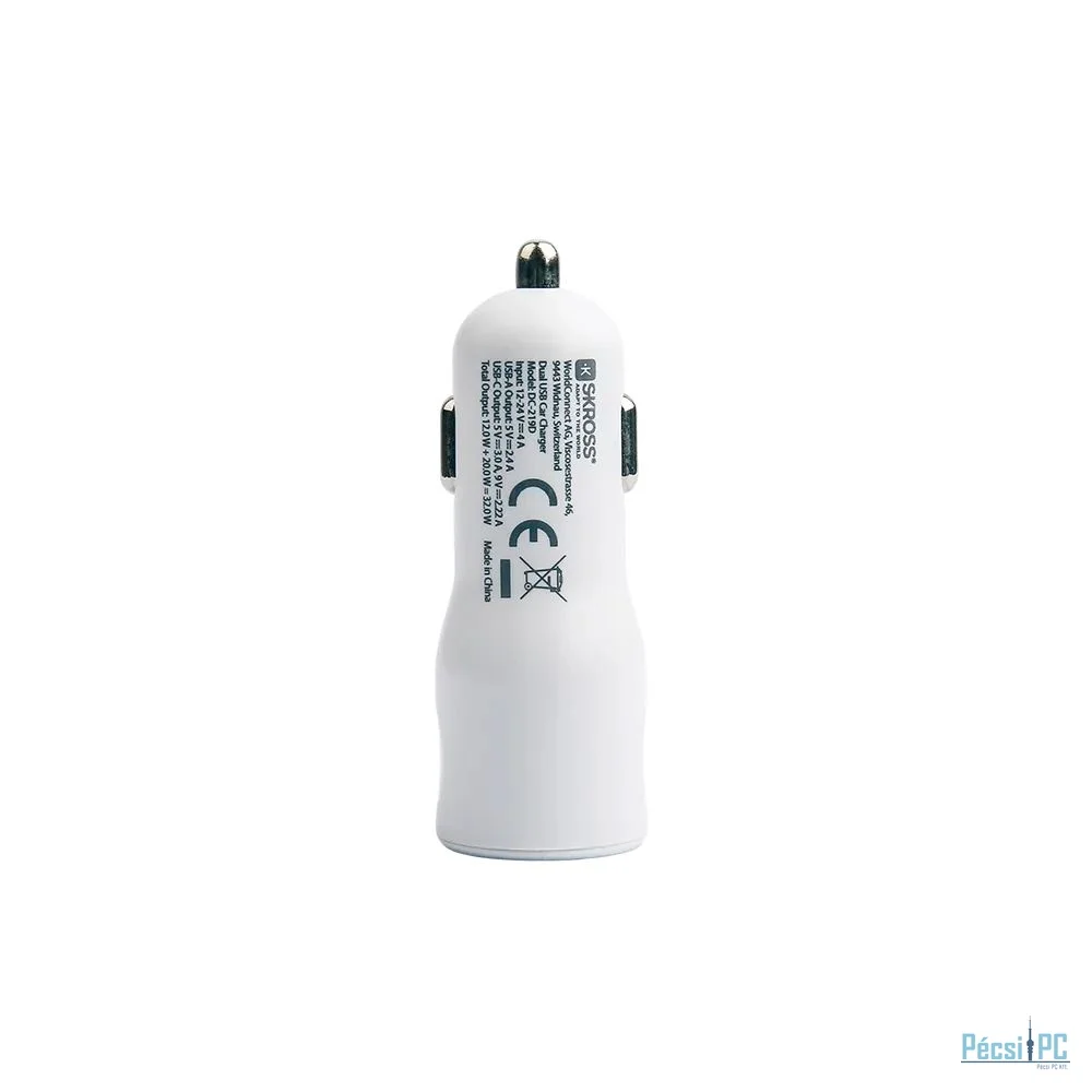 SKROSS 1xUSB-A 1xUSB-C PD 20W autós töltő White