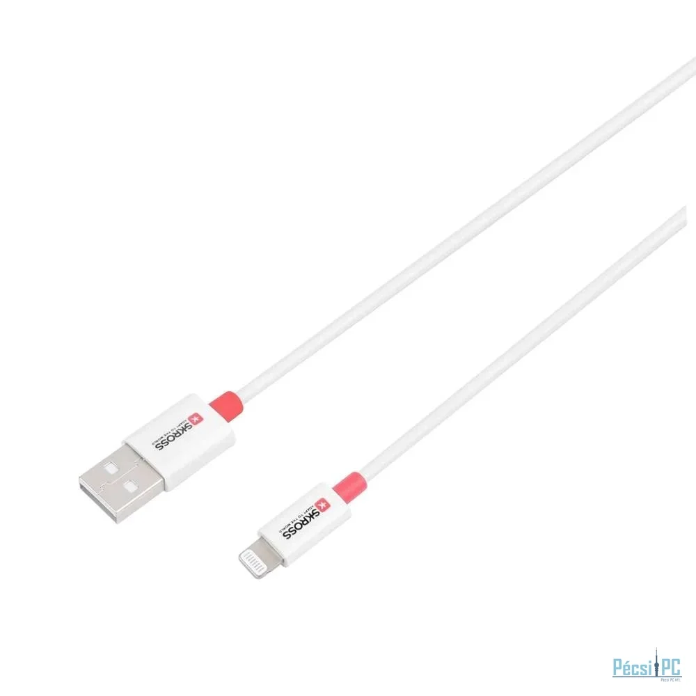 USB kábel, USB-A, Lightning, USB2.0, Male/Male, 2m, White, Töltő és adatkábel