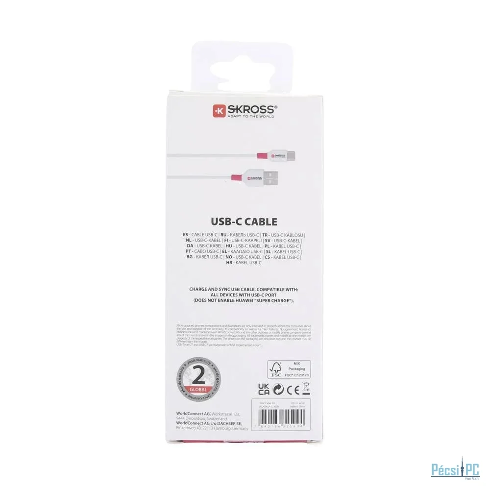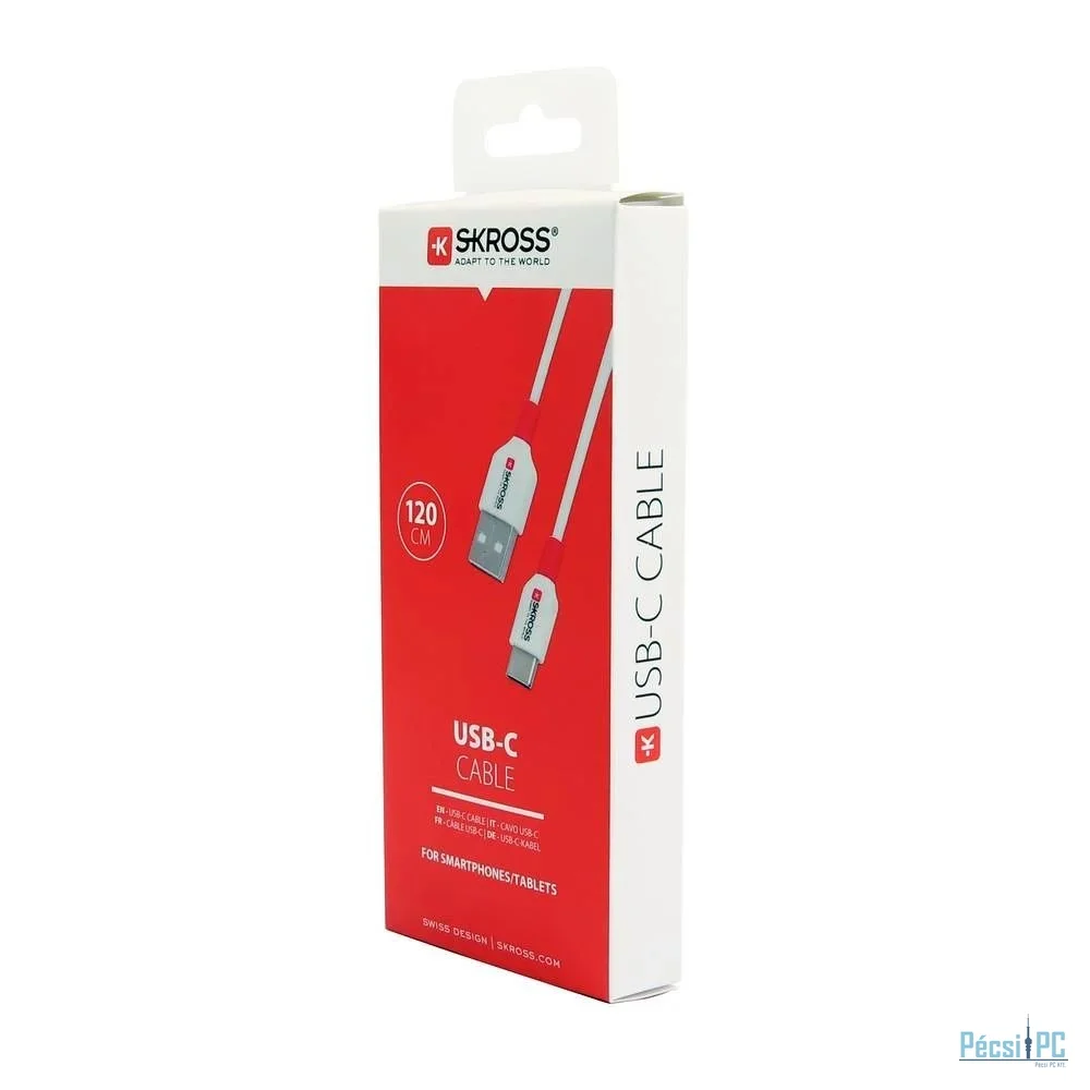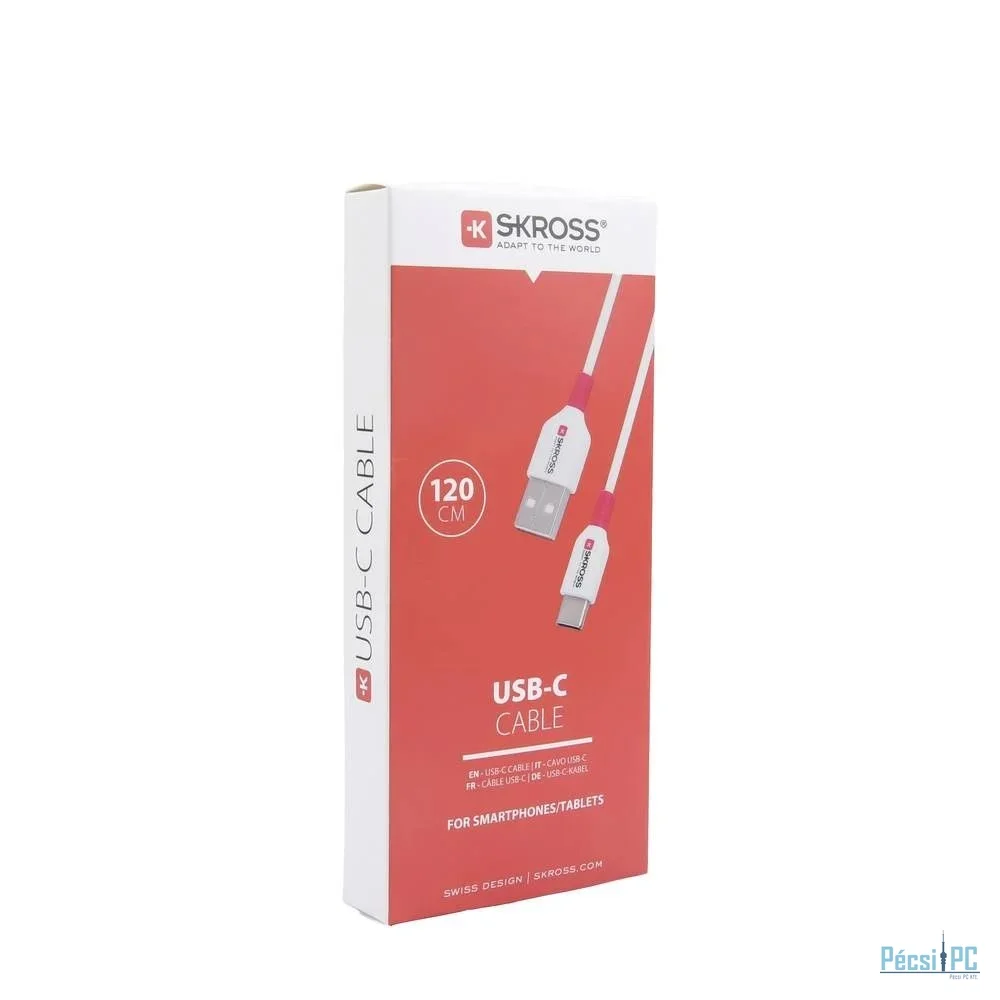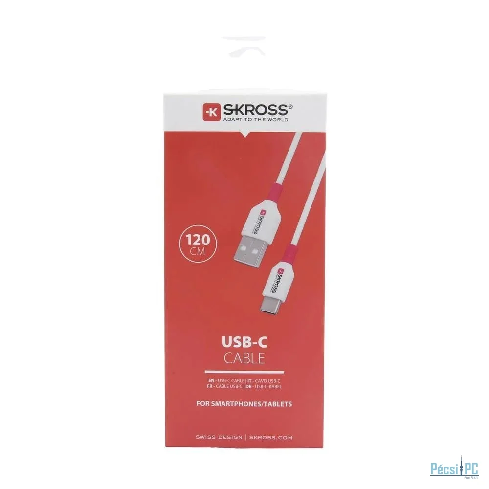 USB kábel, USB-A, USB-C, USB2.0, Male/Male, 1,2m, White, Töltő és adatkábel