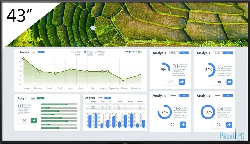 16:9, 3840x2160, 43", 4K, LED, IPS, 60Hz, 8ms, 1200:1, 440cd/m2, 4xHDMI, Hangszóró, LAN, Black