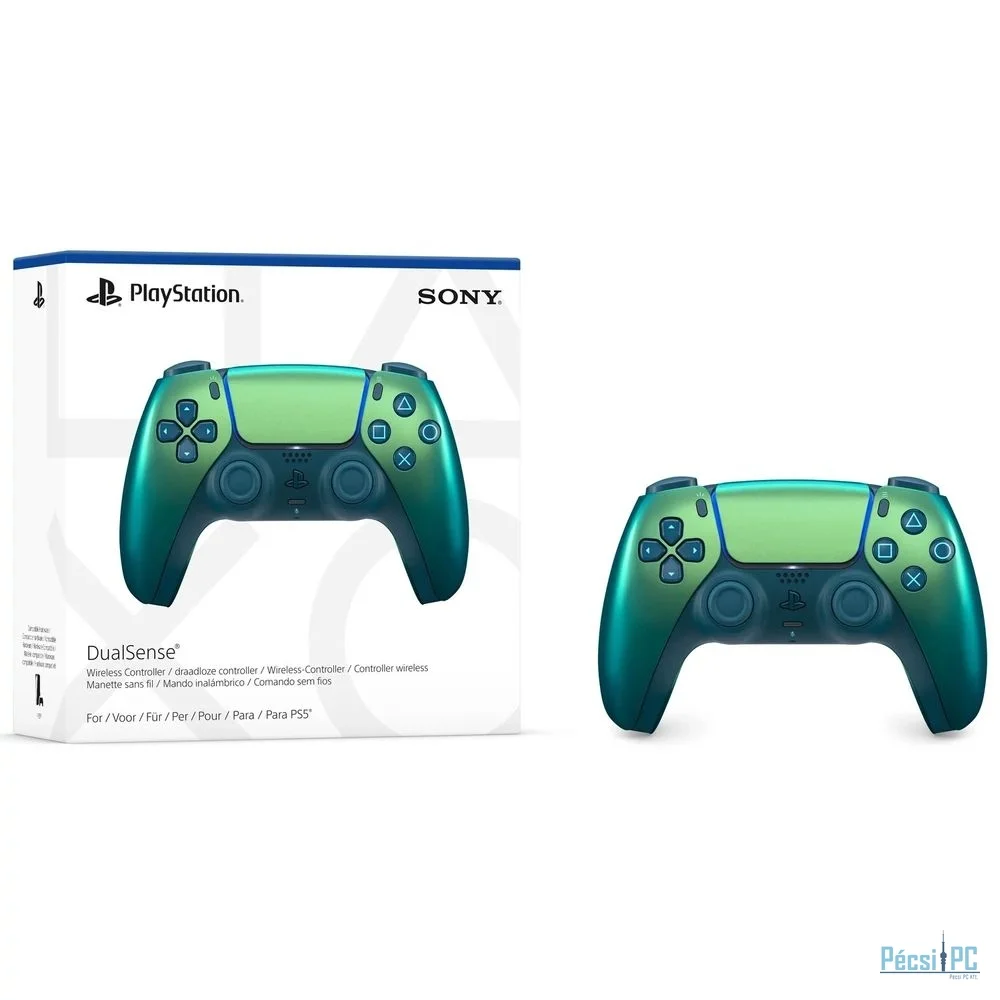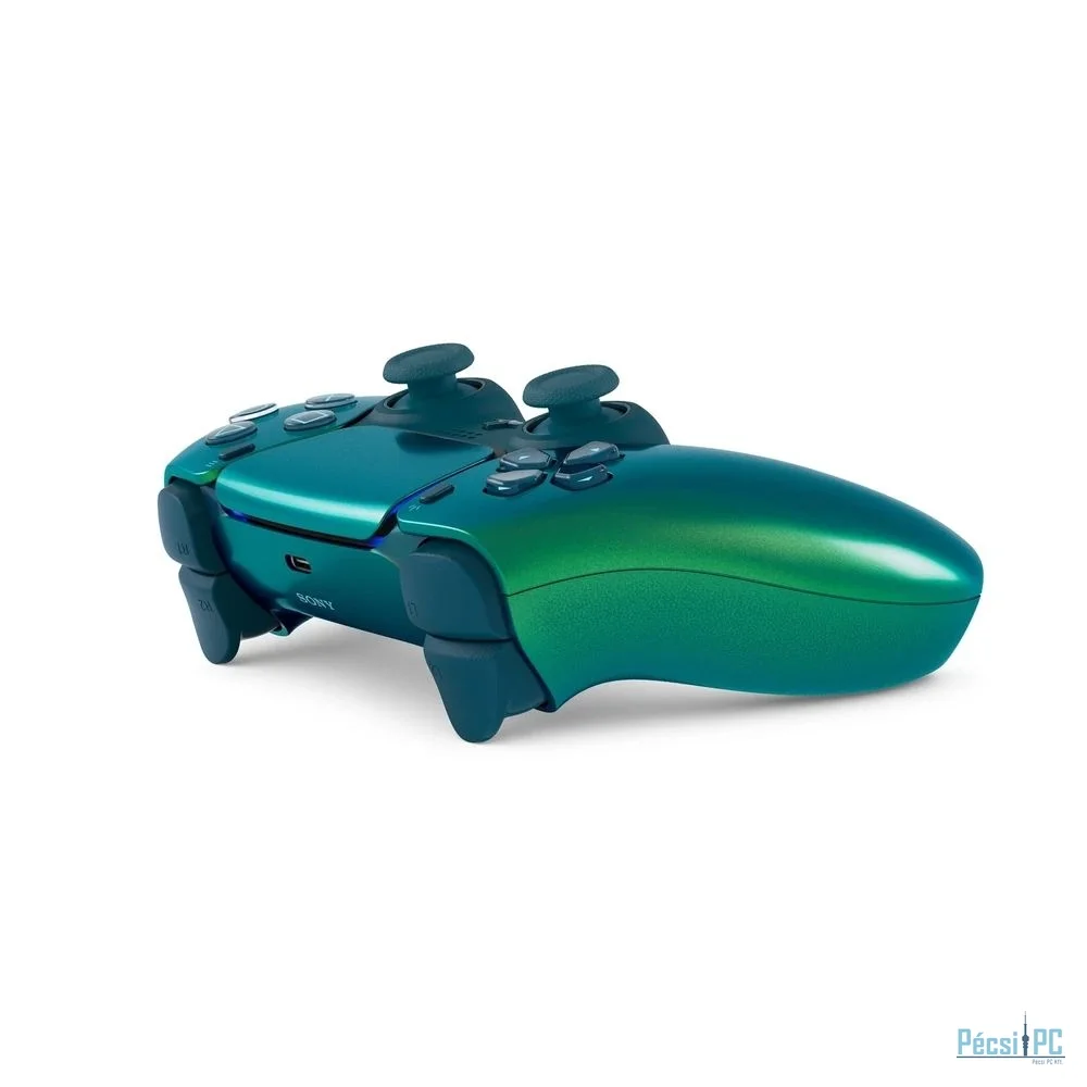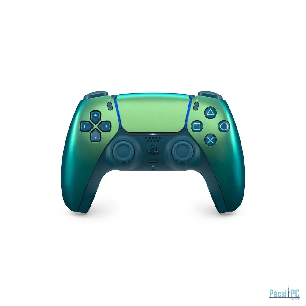 A zöld, színváltó kivitelű Chroma Teal DualSense® vezeték nélküli vezérlő minden szögből változó árnyalataival friss kiegészítője a PlayStation®5 tartozékválasztékának.