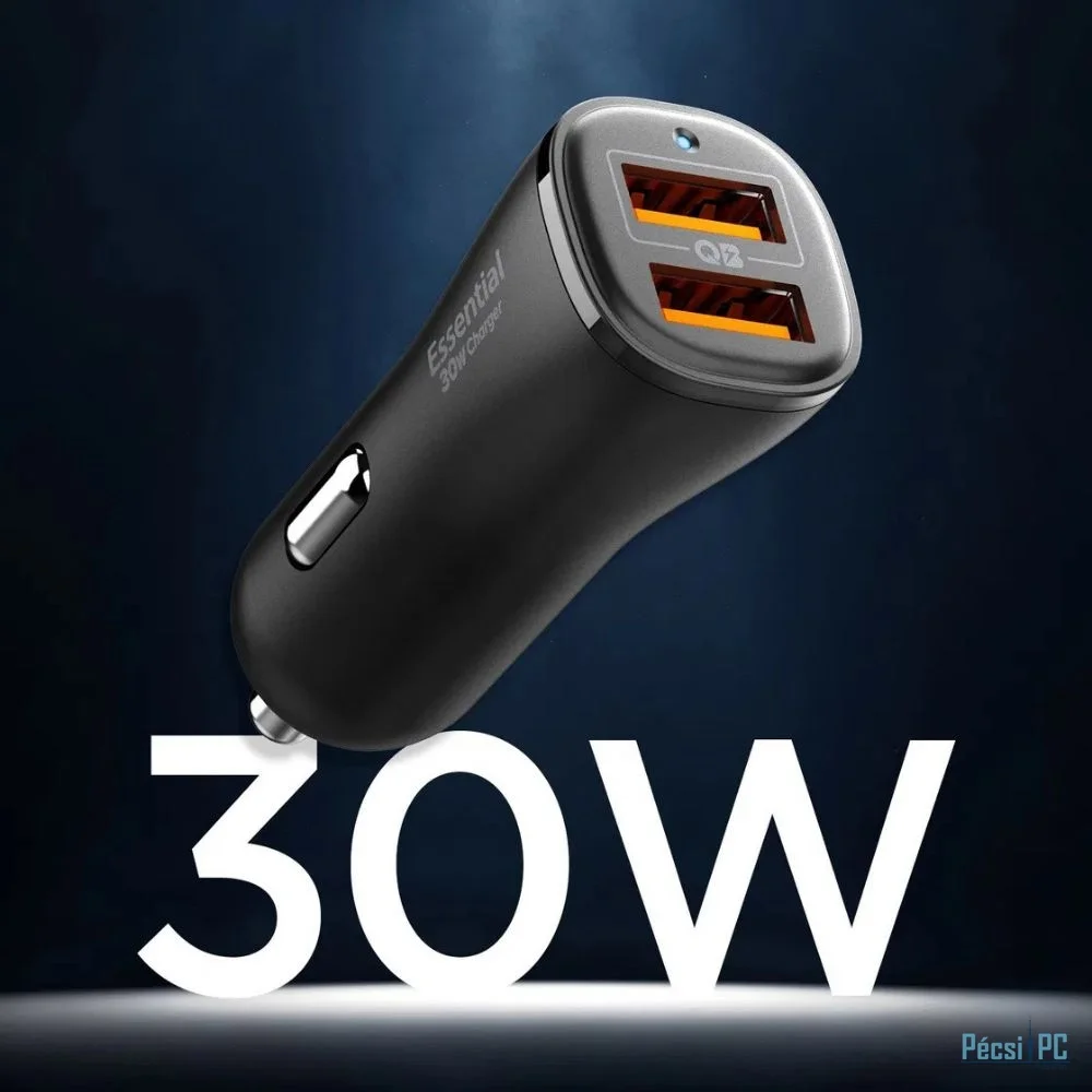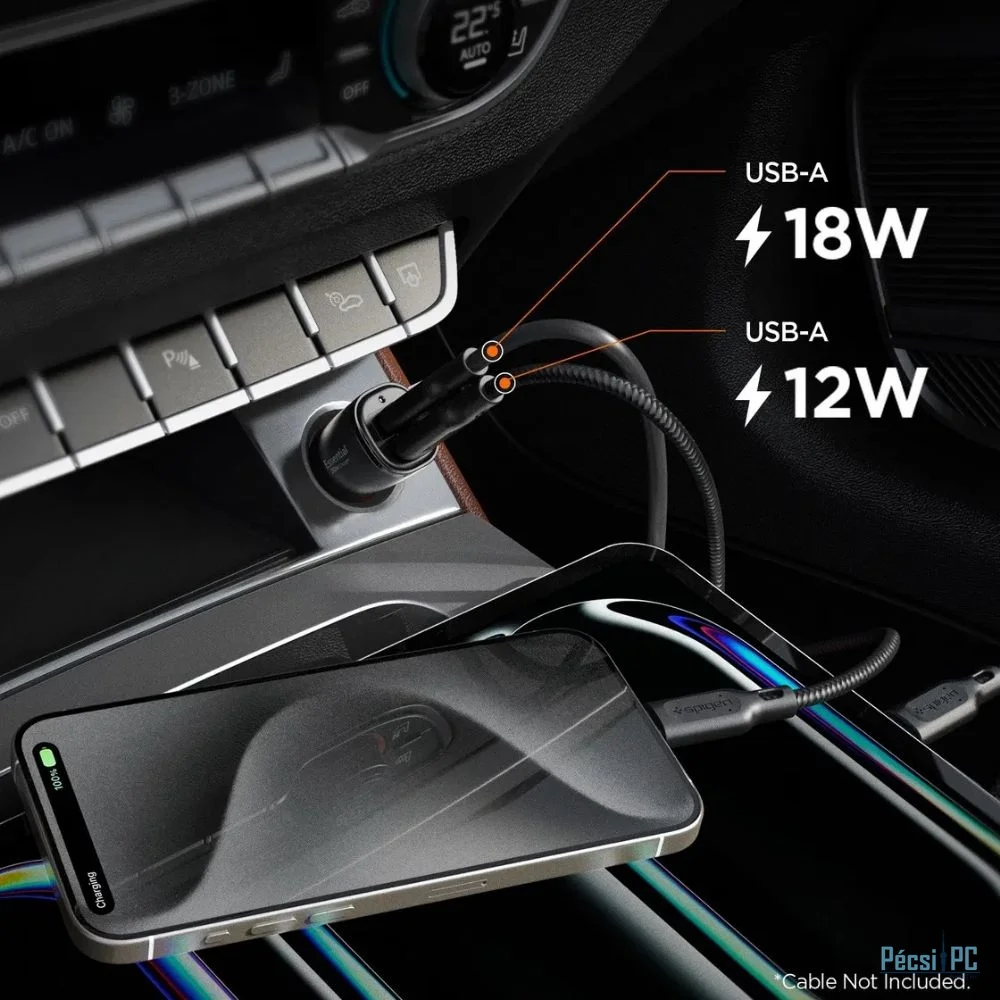 A Spigen Essential EV302 megbízható és biztonságos töltést kínál autójában, kompakt 30 W-os kialakításával és elegáns fekete felületével. 2 USB-A porttal rendelkezik, amelyek lehetővé teszik két eszköz egyidejű töltését, 18 W-os gyorstöltést kínálva okostelefonokhoz és táblagépekhez, valamint 12 W-os okosórákhoz és fejhallgatókhoz.