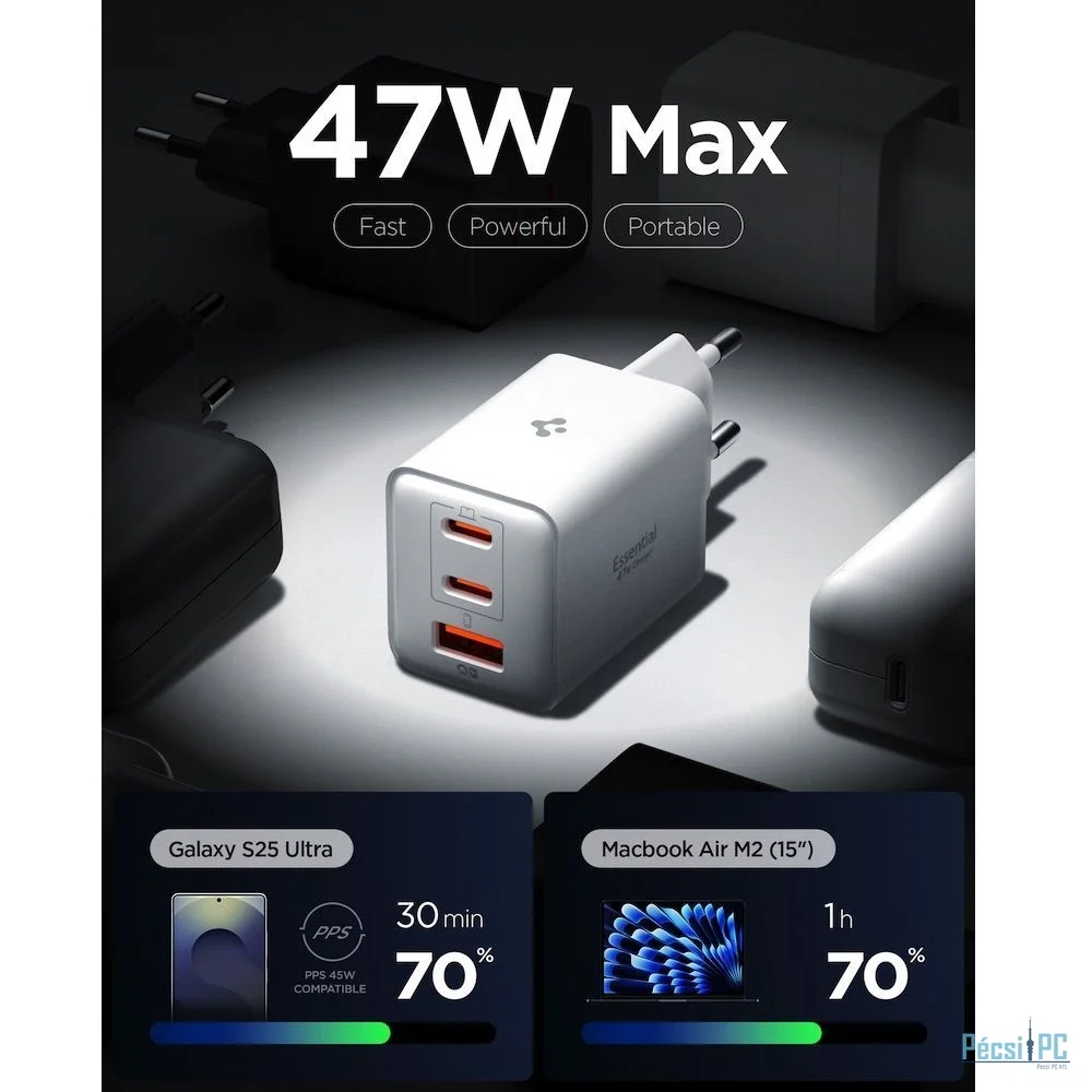 Adapter, 1xUSB-A, 2xUSB-C, 5V/9V/12V/15V/20V, 3A, 47W, QC, PD, White