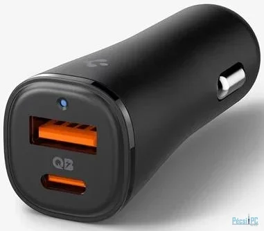 Autós töltő, 1xUSB-A, 1xUSB-C, 5V, 2,4A, 48W, QC, PD, Black