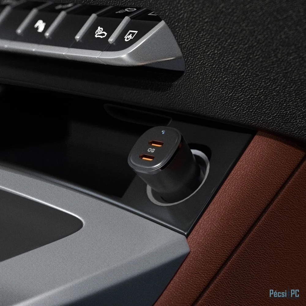 Autós töltő, 2xUSB-C, 5V, 2,4A, 50W, QC, PD, Black