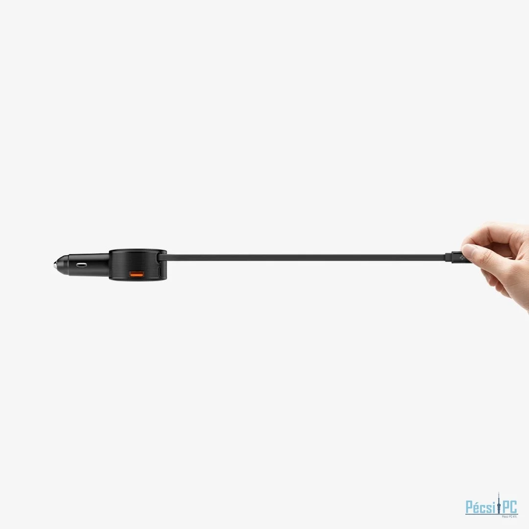 Autós töltő, 1xUSB-A, 1xUSB-C, Kábel csatlakozó USB-C , 5V, 30W, Black