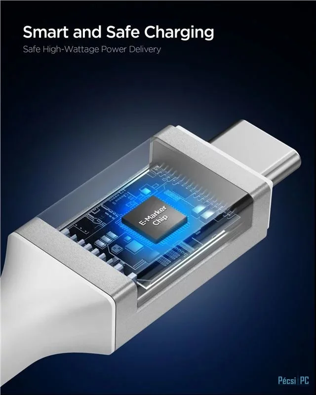 USB kábel, USB-C, USB-C, USB3.2, Male/Male, 1,2m, White, Töltő és adatkábel