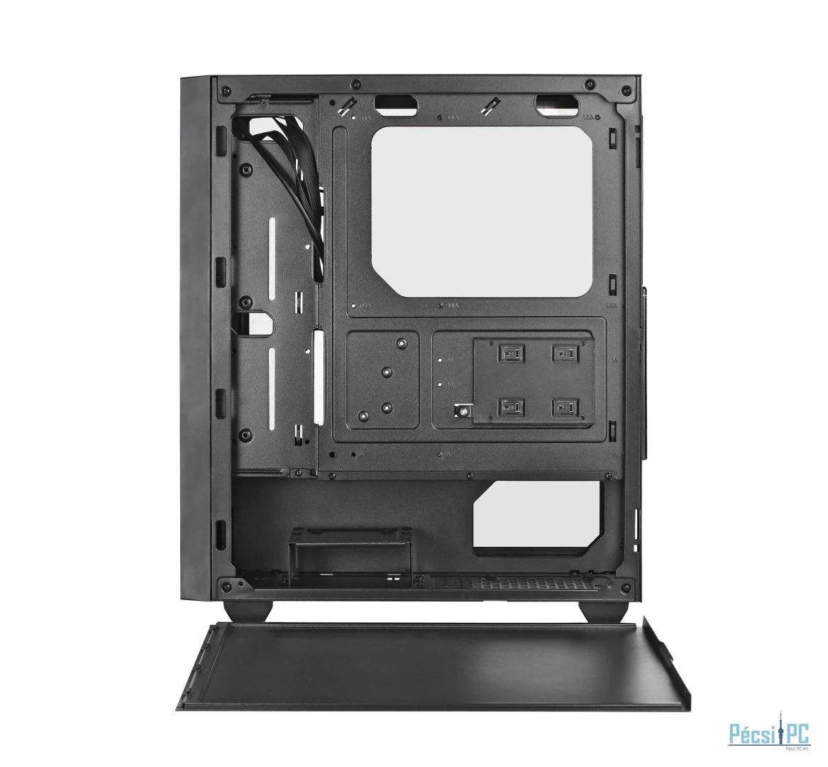 ATX, Black, 2x3,5", 2x2,5", 2xUSB2.0, 1xUSB3.0, Audio, Táp nélkül, 460x410x215mm, Tempered glass window, RGB, Gamer