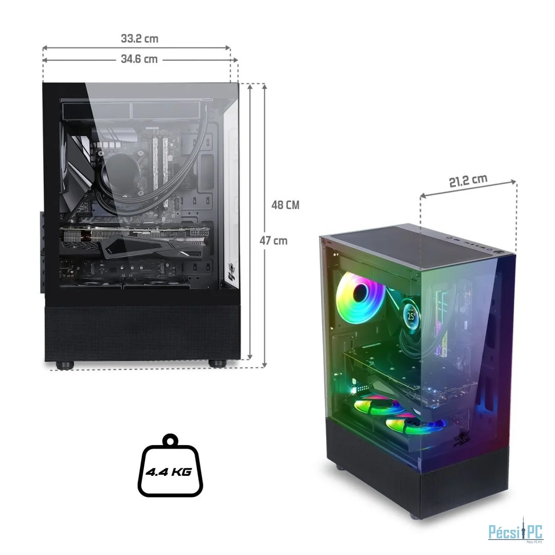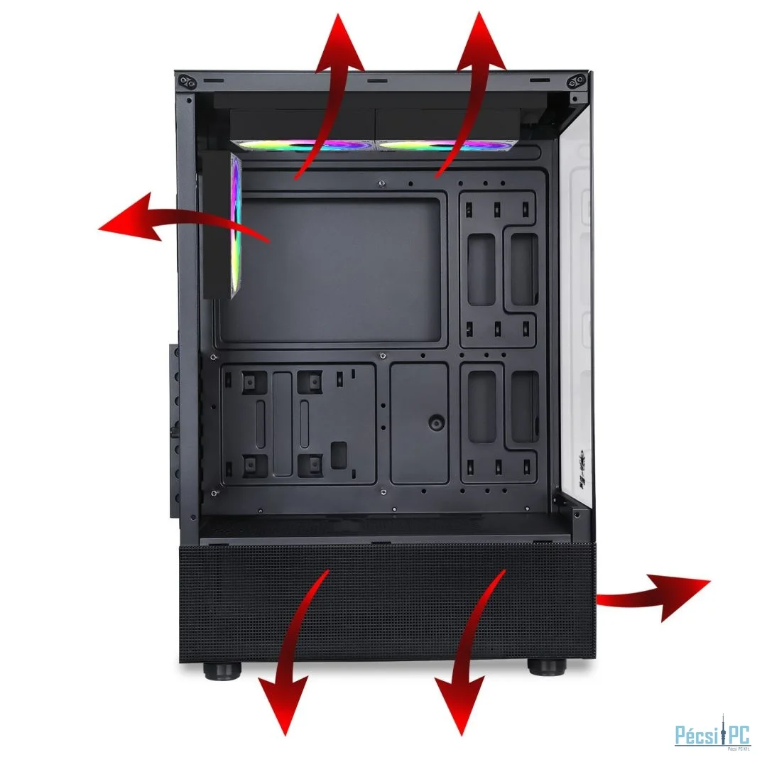 ATX, Black, 1x3,5", 2x2,5", 2xUSB2.0, 1xUSB3.0, Audio, Táp nélkül, 400x269x531mm, Ventilátor:3x12cm, Window, RGB, Gamer