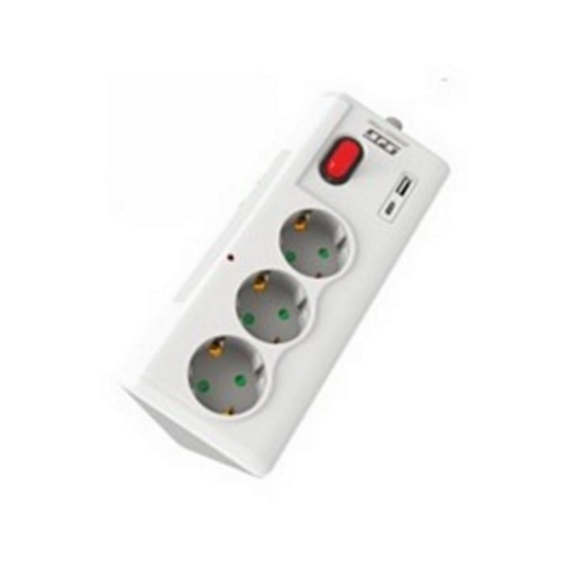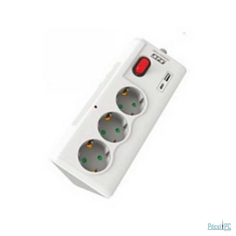 Elosztó, 3xDIN, 1,5m, Kapcsoló, USB, White