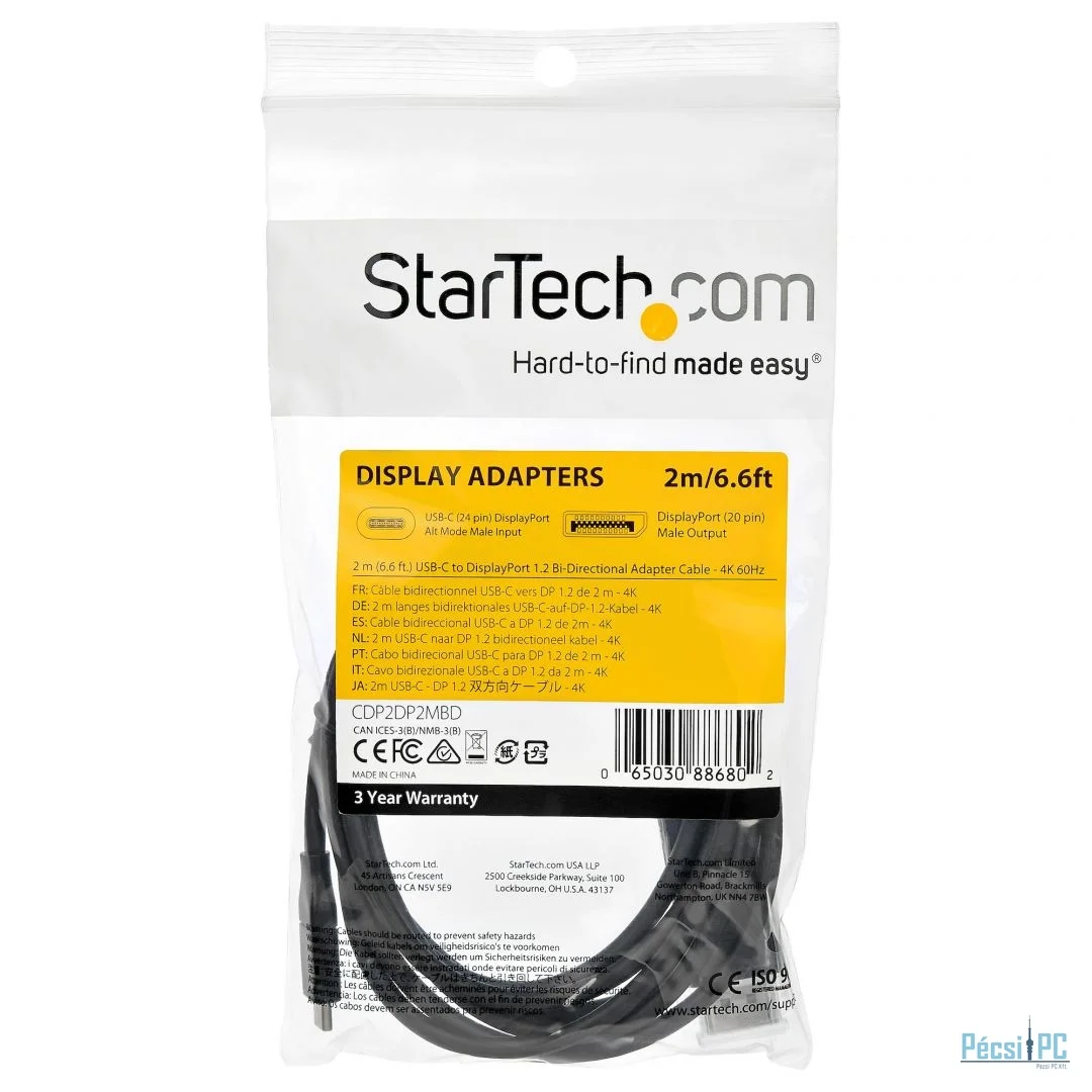 Startech USB-C to DisplayPort 1.2 4K 60Hz cable 2m Black
