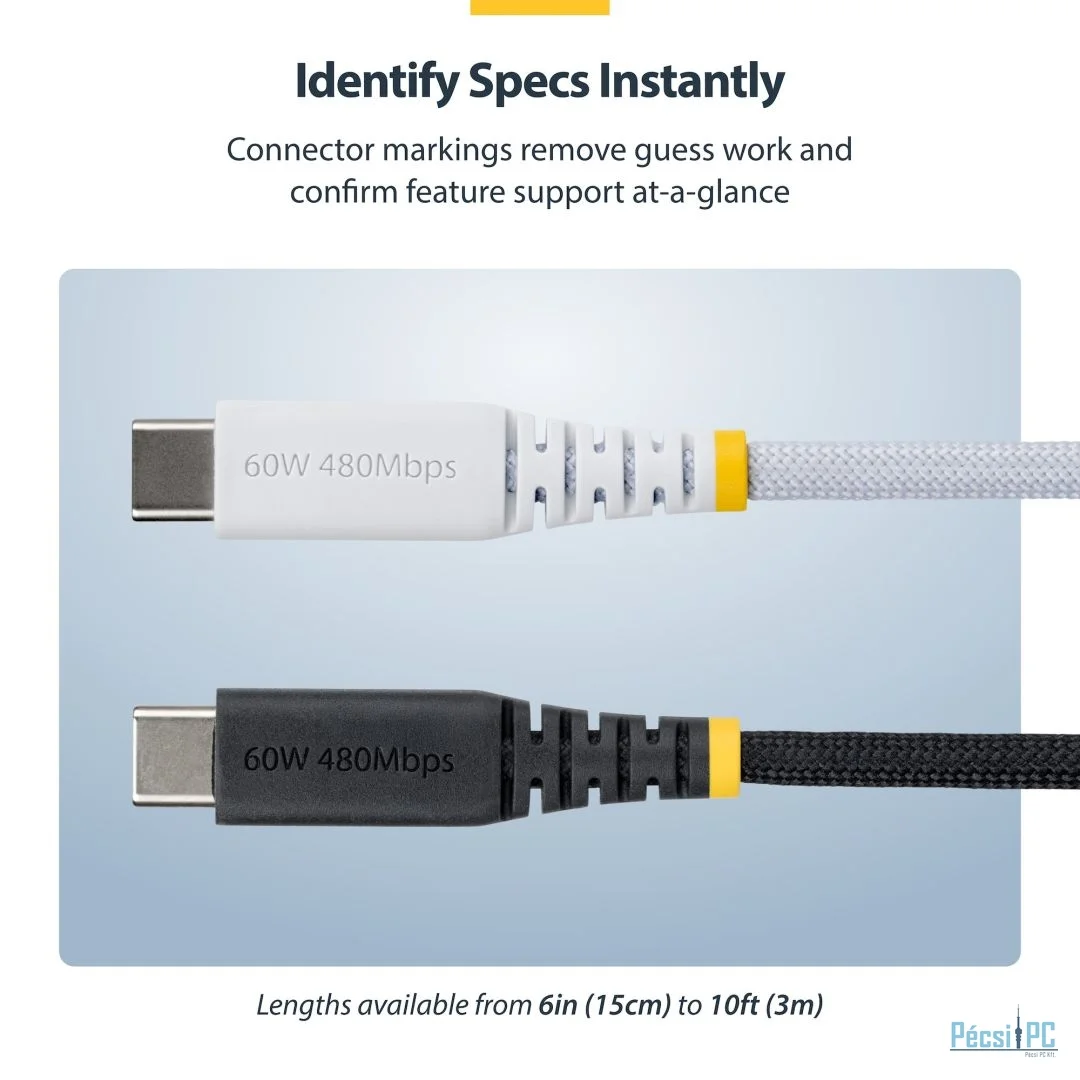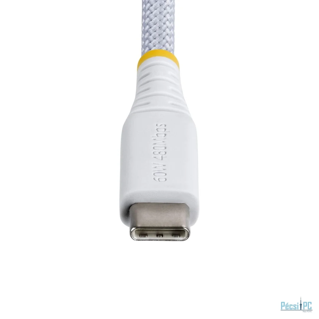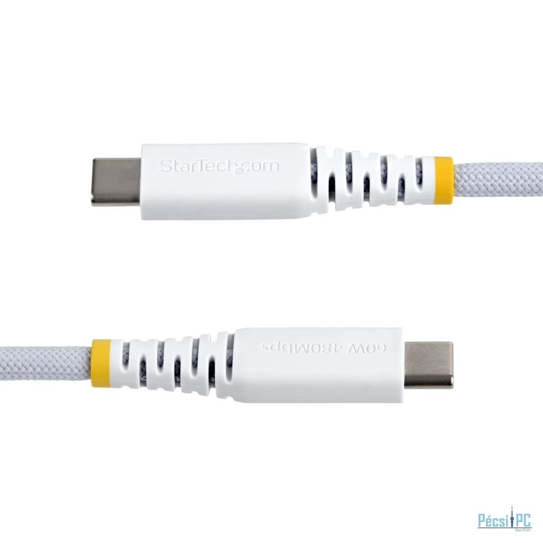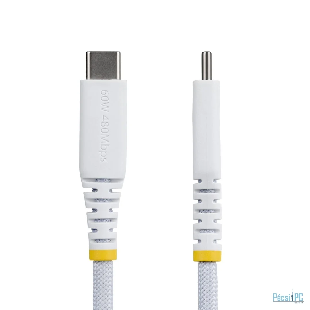 USB kábel, USB-C, USB-C, USB2.0, Male/Male, 1m, White, Töltő és adatkábel, Szövetborítás