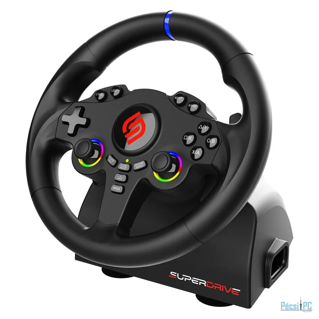 Kormány/pedál szett, PC/PS5, USB, Nincs váltó, Két pedálos, Vibrációs funkció, RGB, Gamer