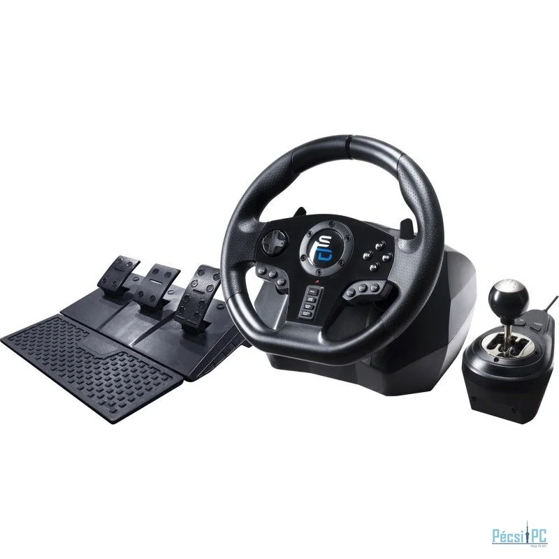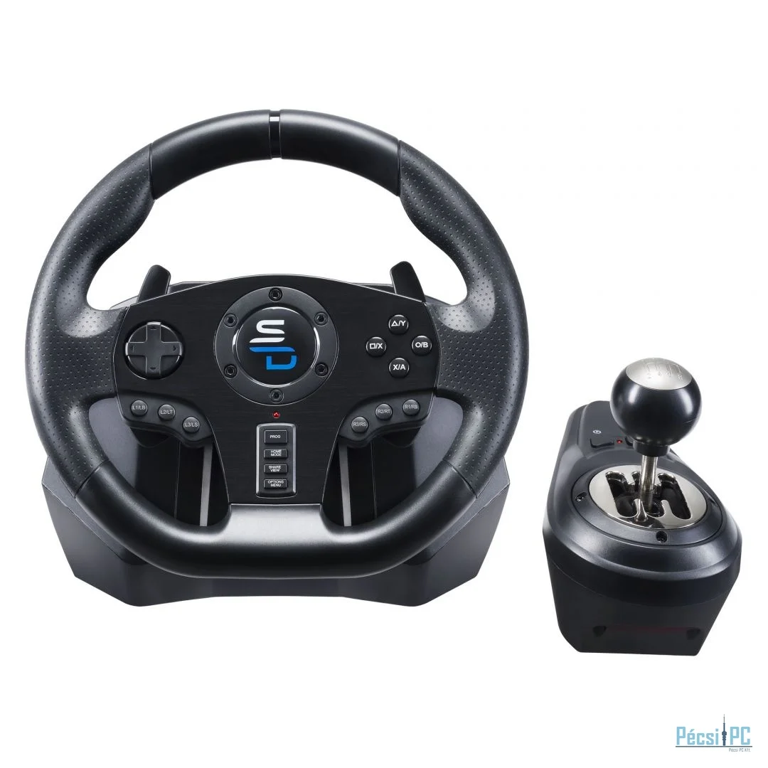 Kormány/pedál szett, PS4/PS5/XBOX SERIES/XBOX ONE/PC, USB, Sebességváltó modul, Két pedálos, Vibrációs funkció, Force feedback