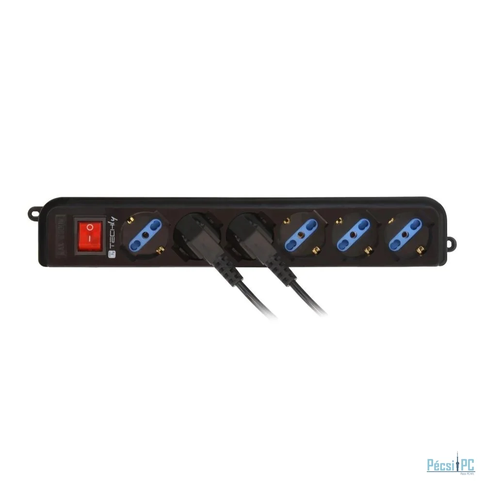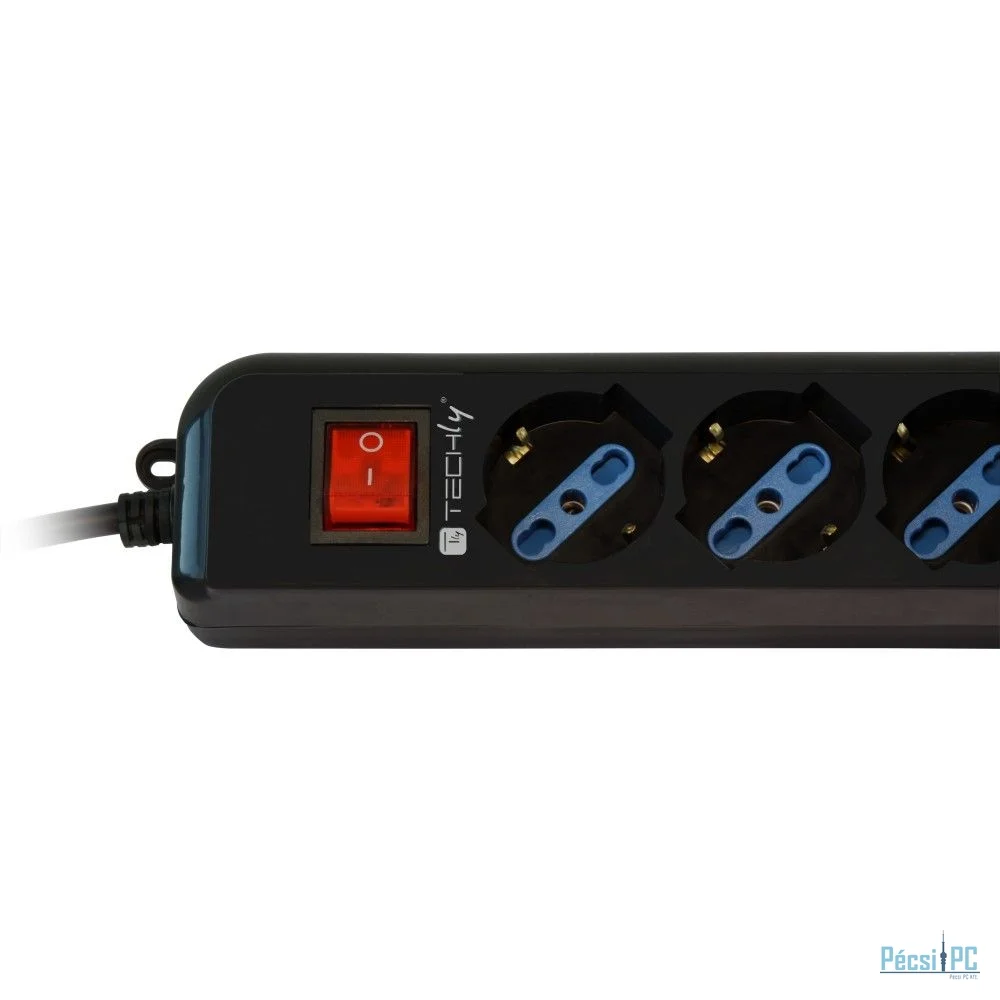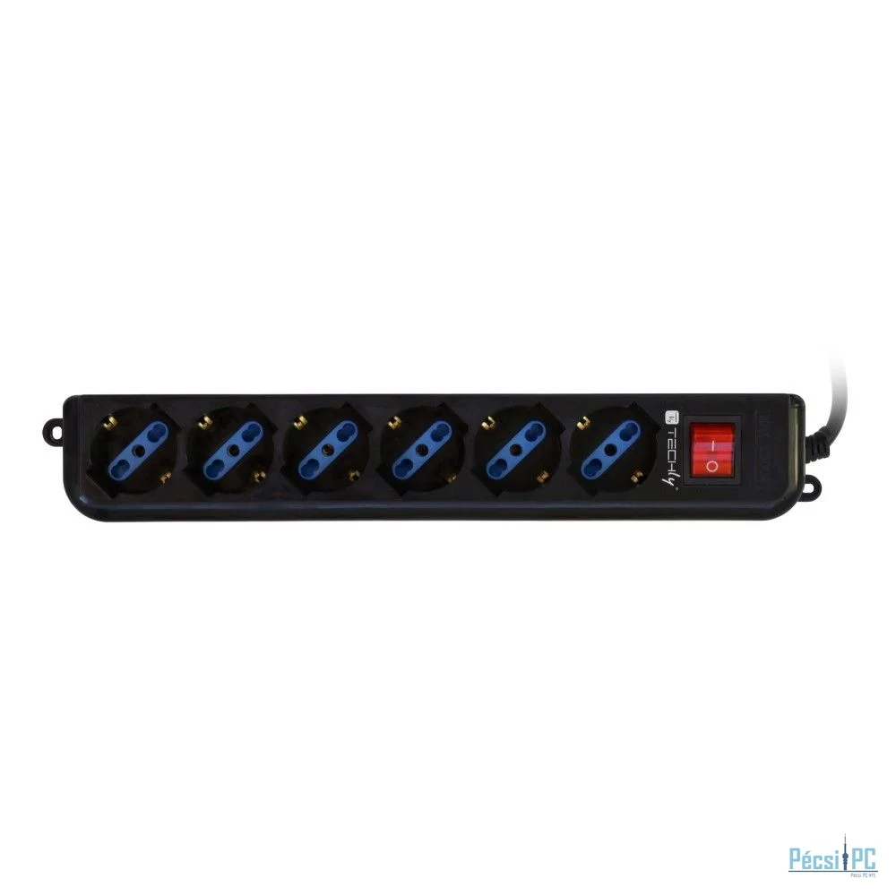 TECHLY Hálózati Elosztó Kapcsolóval 6DIN Black