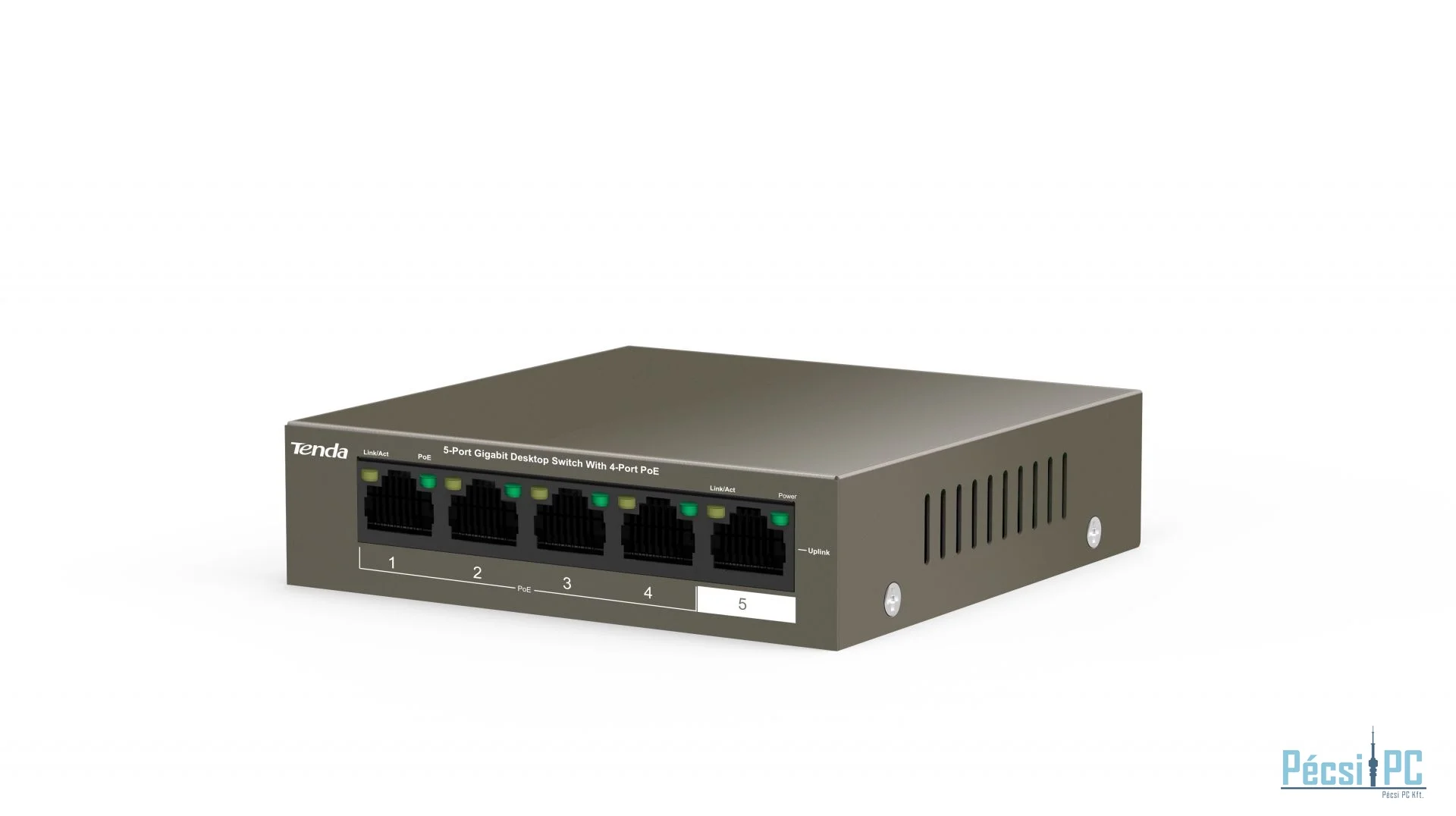 A TEG1105P-4-63W egy Tenda PoE kapcsoló, amely 5*10/100/1000 Mbps Base-TX RJ45 portokat kínál.