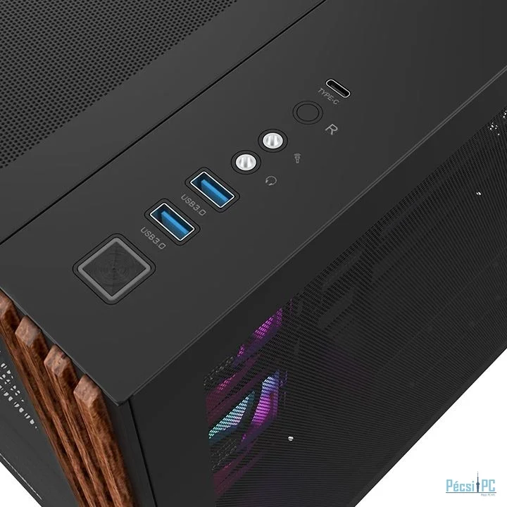 ATX, Black, 1x3,5", 2x2,5", 2xUSB3.0, 1xUSB Type-C, Audio, Táp nélkül, 447x411x285mm, Ventilátor:4x12cm, Tempered glass window, RGB, Gamer